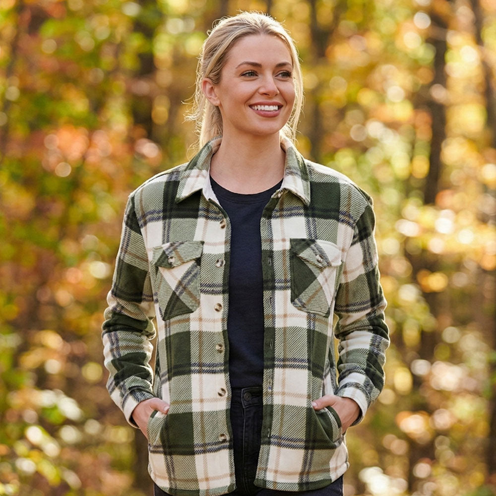 The Women's Plaid Shirt Jacket is a versatile layer designed to keep you warm and comfortable at home, on the job, or out around town. Its classic plaid styling and button-front design offer a timeless look, while the thoughtful construction makes it a dependable choice for everyday wear.