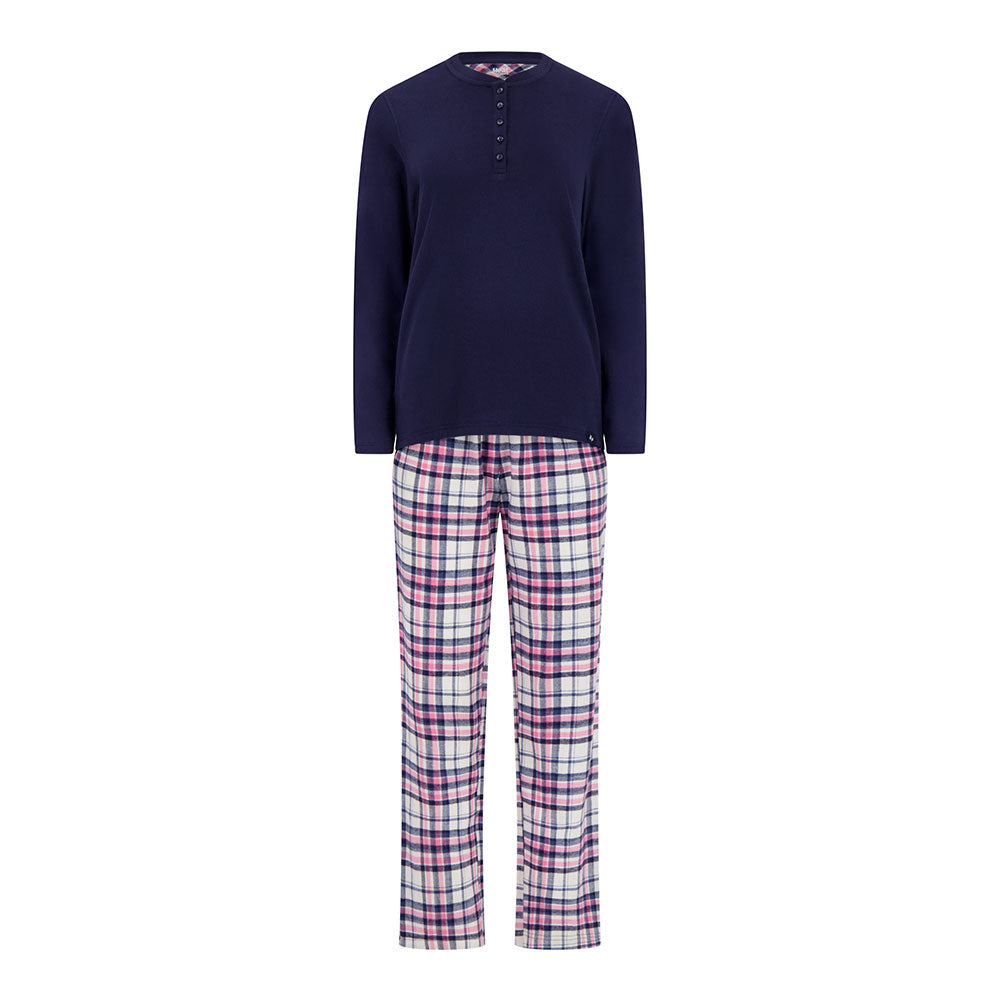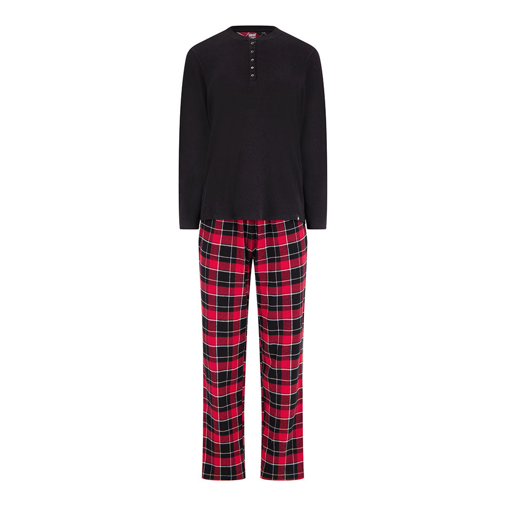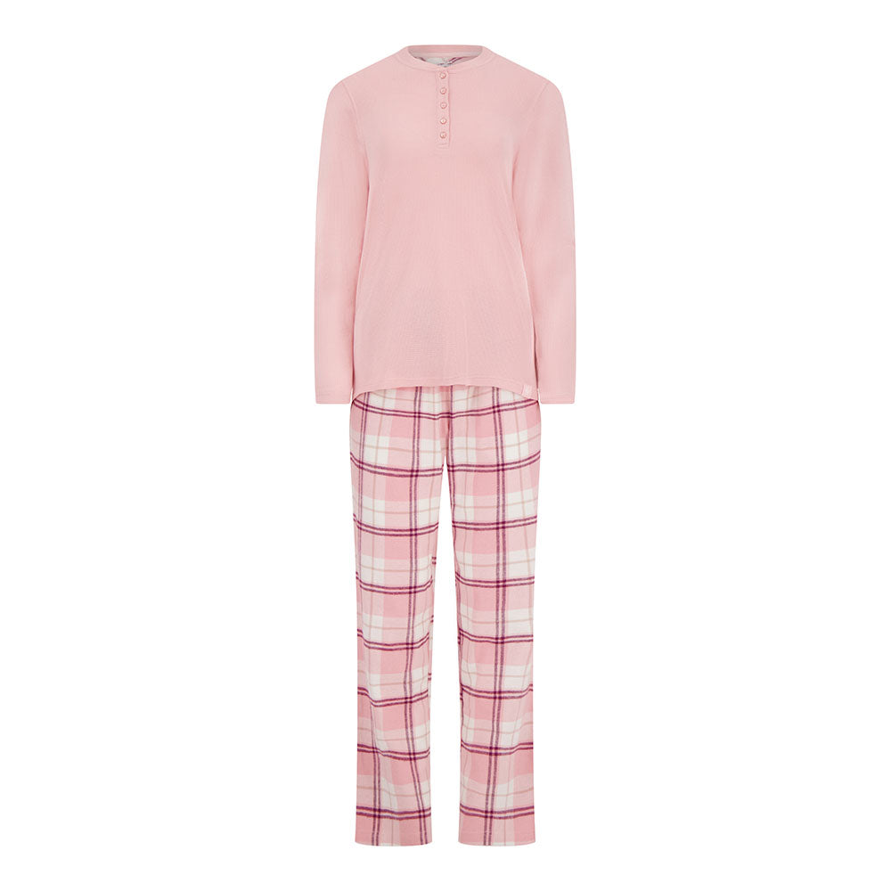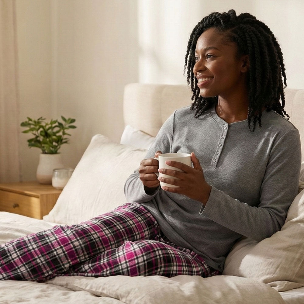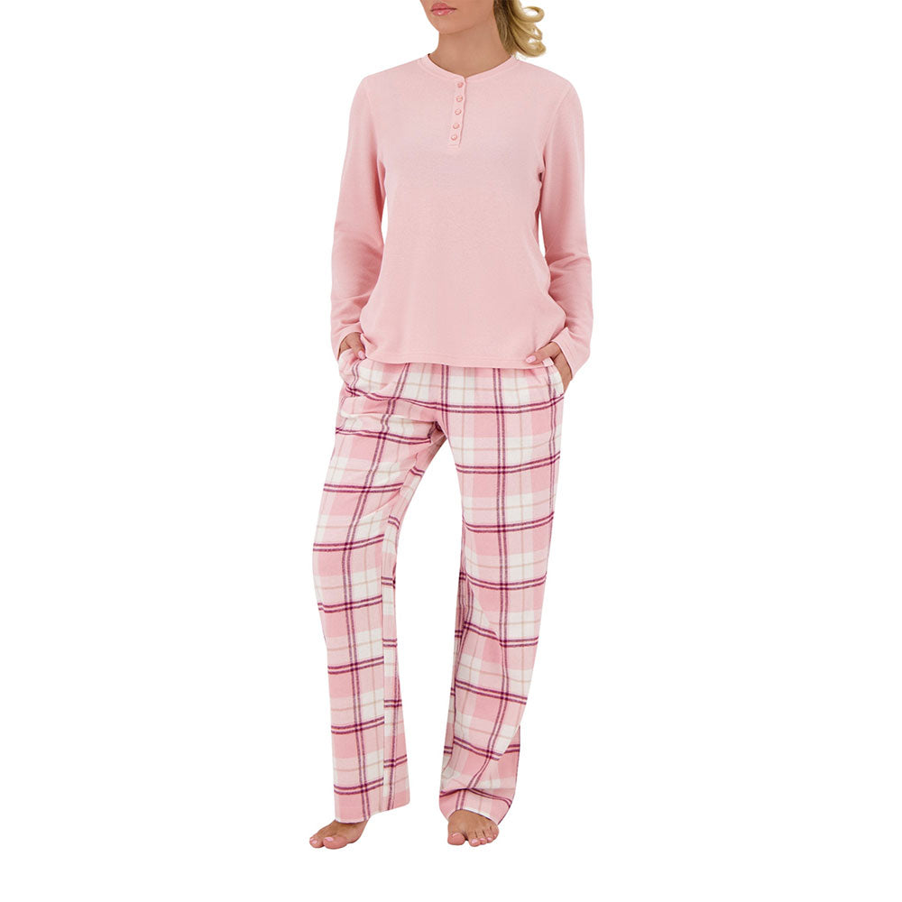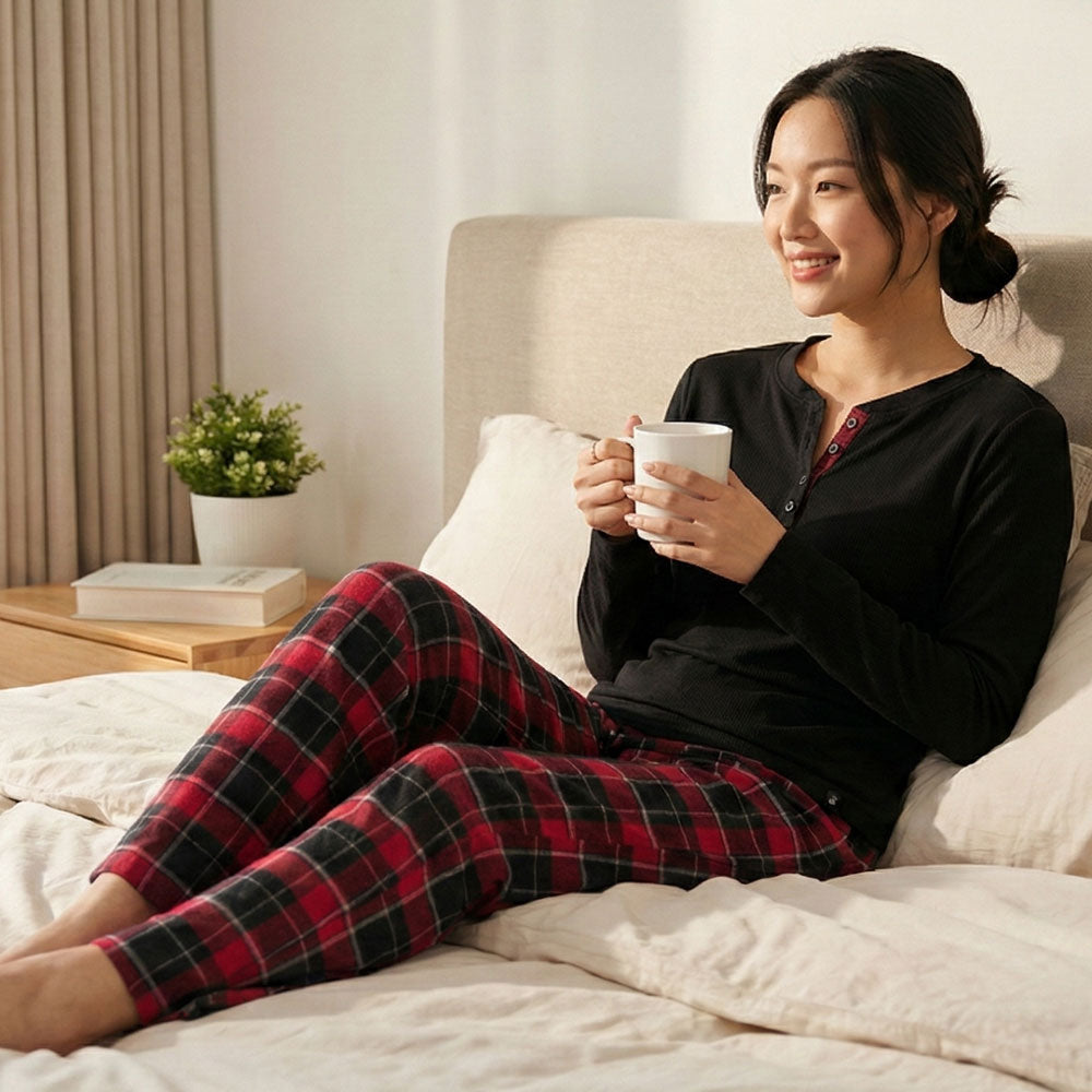 With a modern, flattering fit and timeless plaid pattern, you’ll be reaching for this sleep set night after night. The Women's Waffle Top & Flannel Pants Pajama Set pairs a soft waffle-knit Henley top with cozy plaid flannel pants—designed to wrap you in warmth and comfort after even the busiest day.