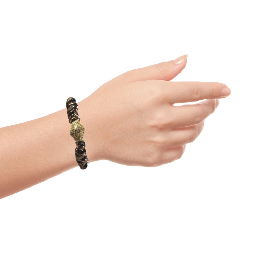 With pavé CZ stones and bold hematite, this bracelet makes a beautiful statement piece. Whether you wear it solo or add it to a stack, it can effortlessly carry you from day to night.