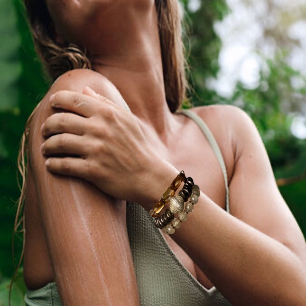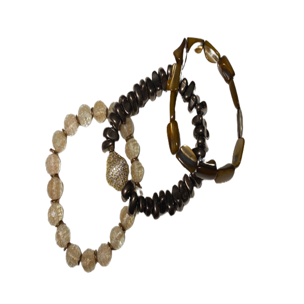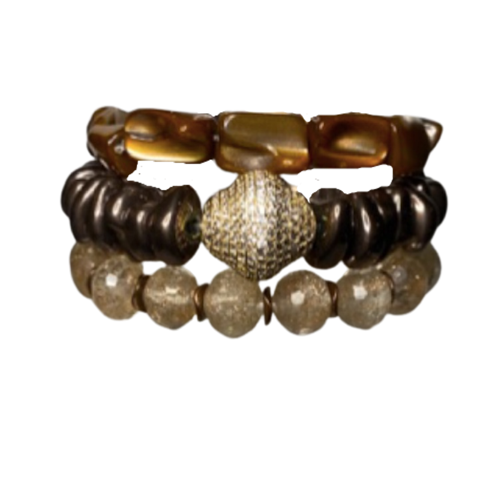 Make a bold statement with this bracelet stack! Featuring a variety of genuine stones, these three bracelets are designed to look beautiful together.