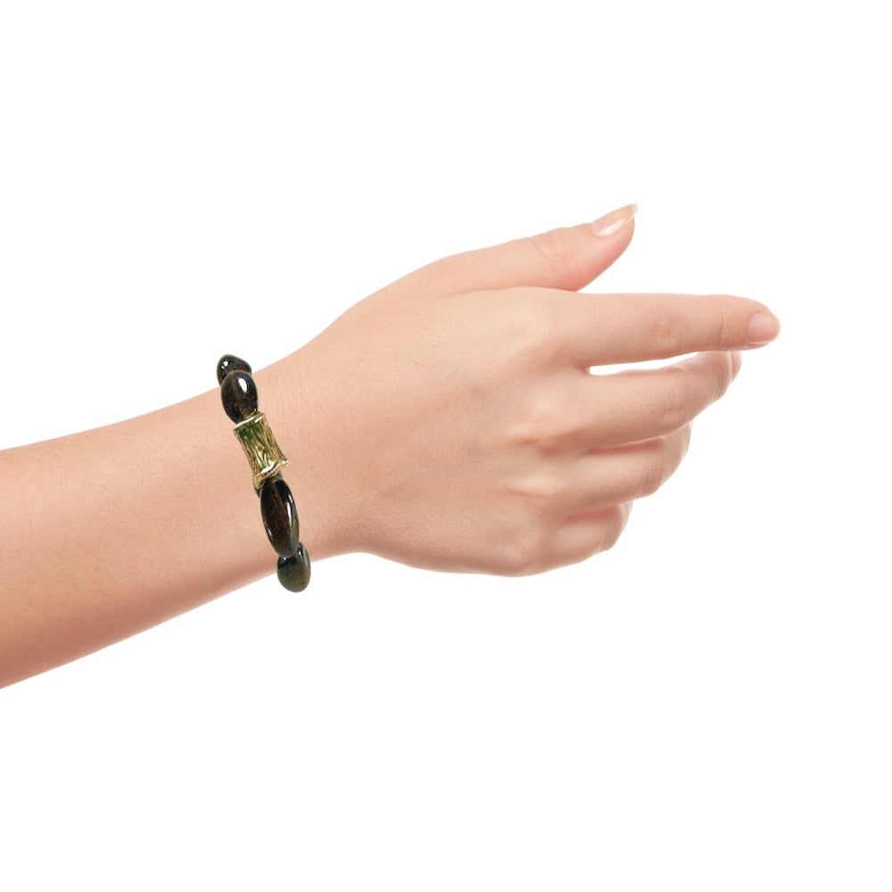 Make a bold statement with this beautiful bracelet featuring smoky quartz beads. Whether you wear it solo or add it to a stack, this piece can effortlessly carry you from day to night.