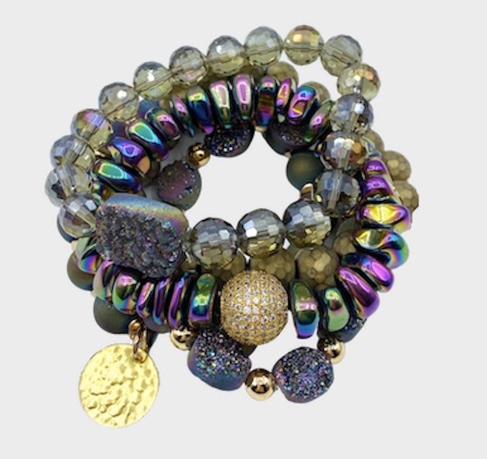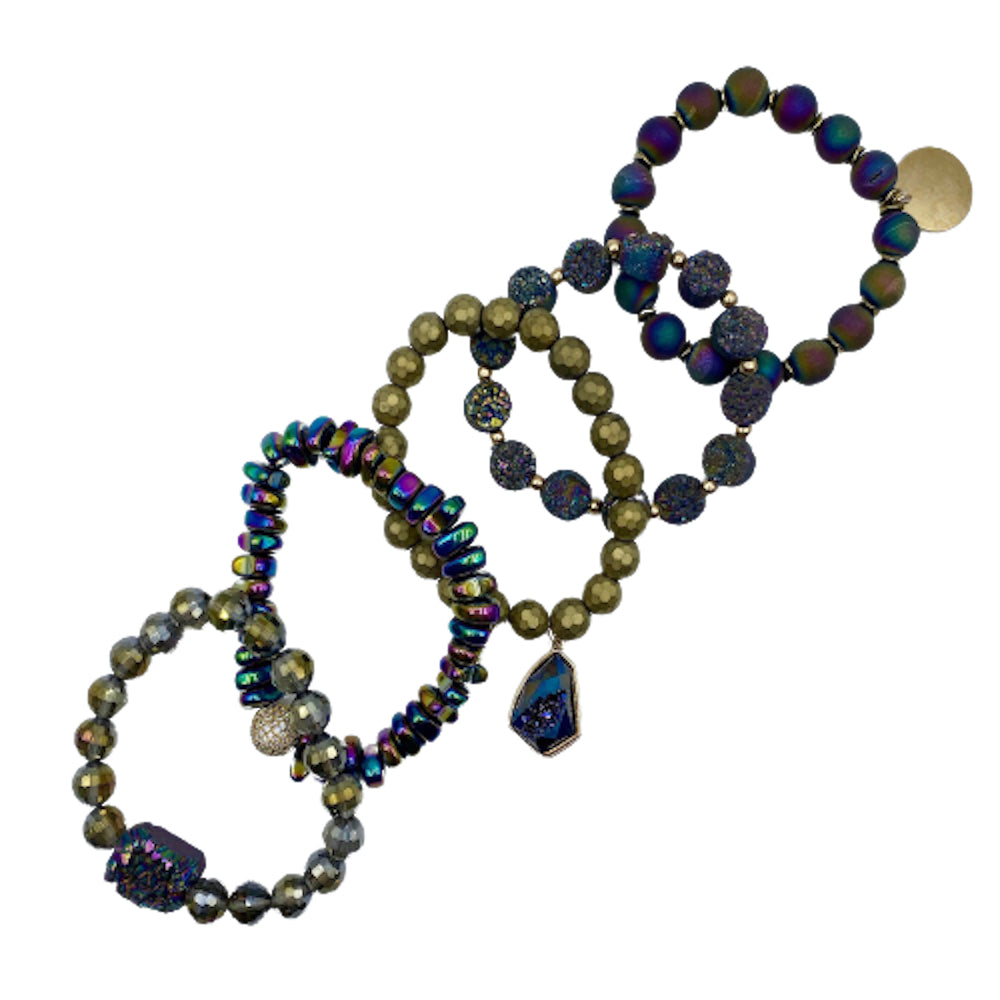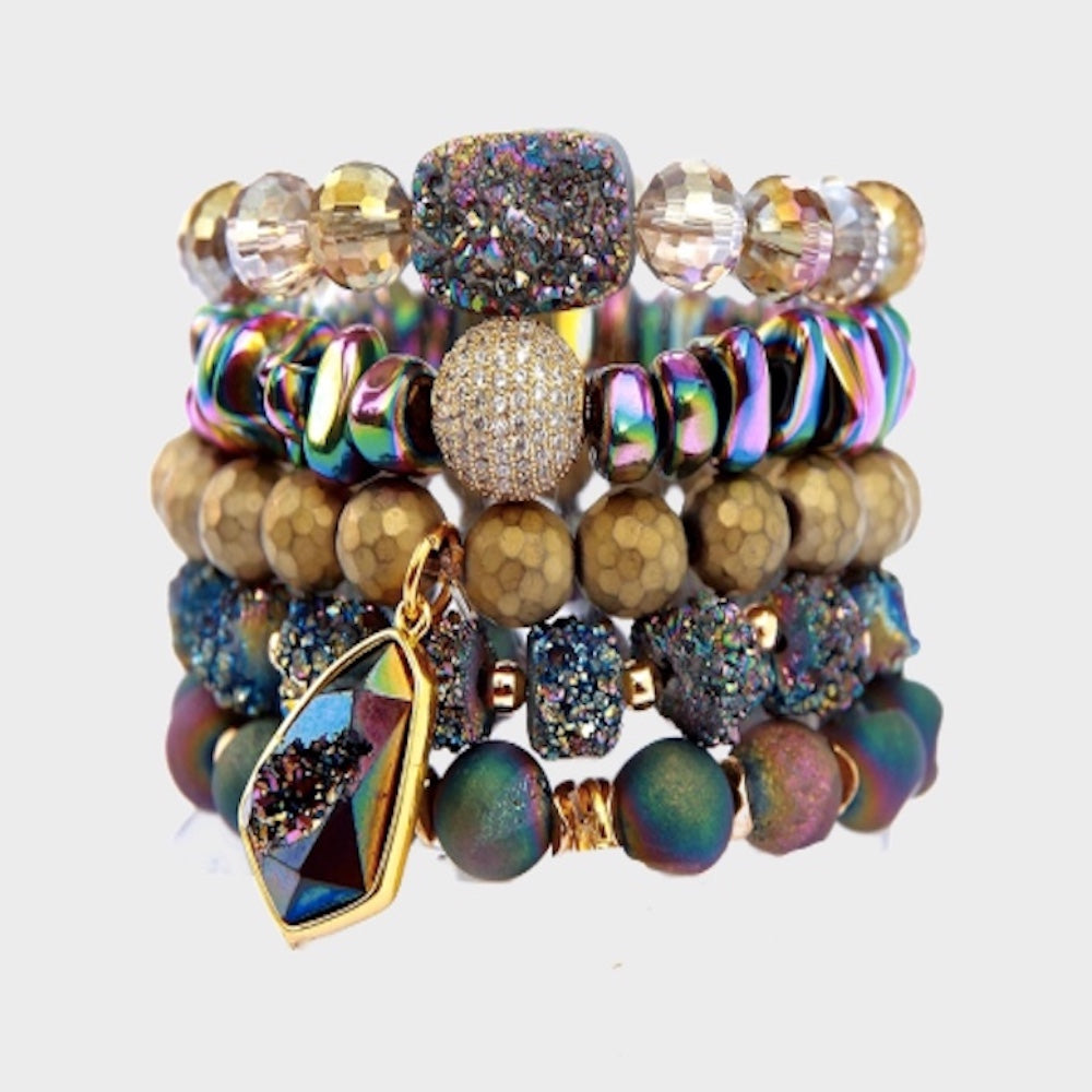 This bold bracelet stack is sure to make a statement! Whether you wear each bracelet solo or stack them together, they can transform your look from ordinary to extraordinary.