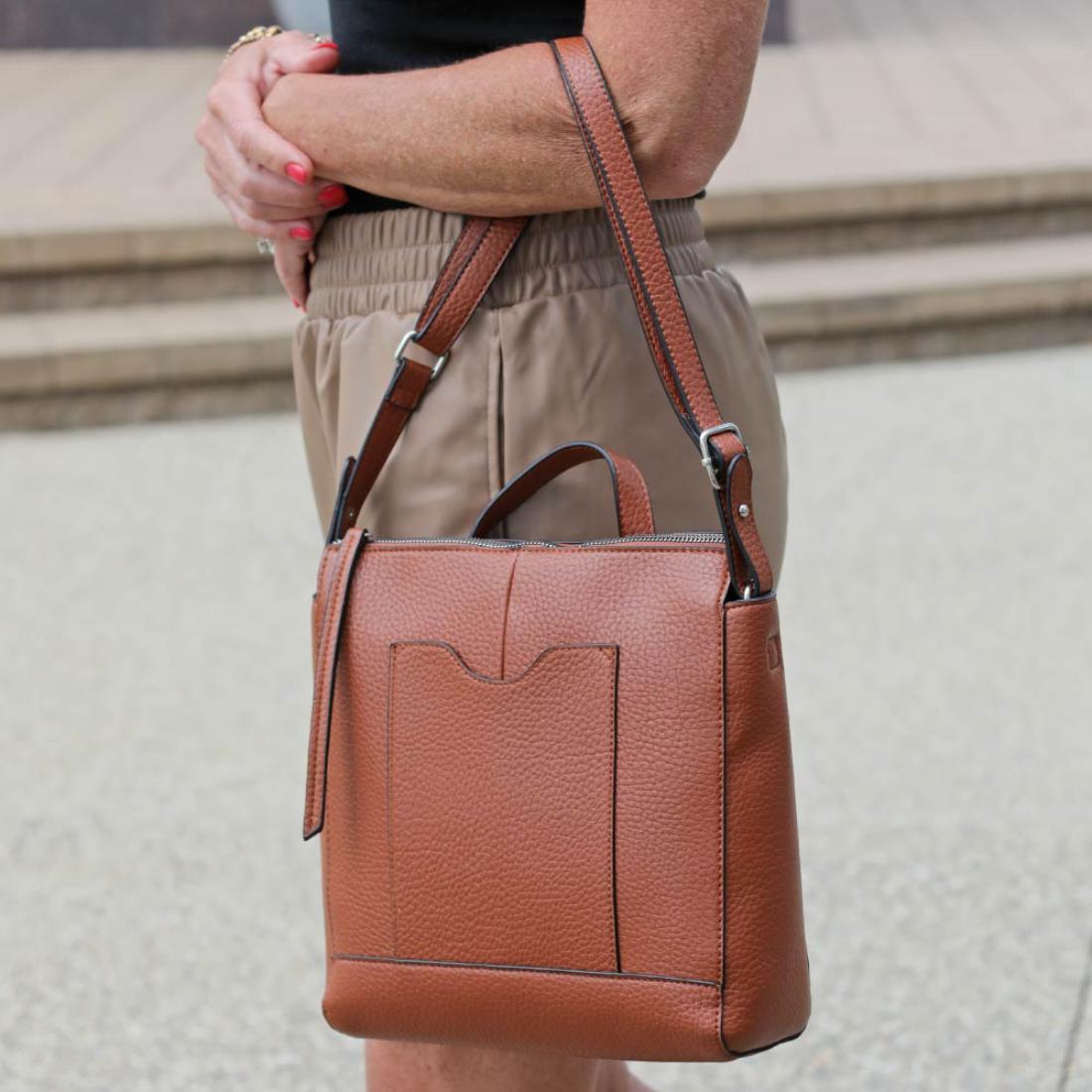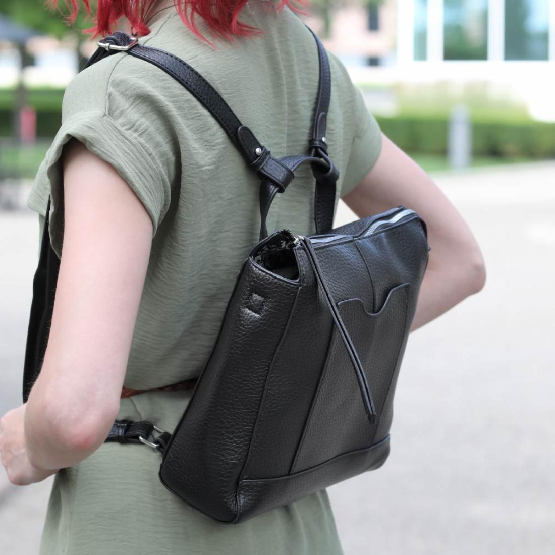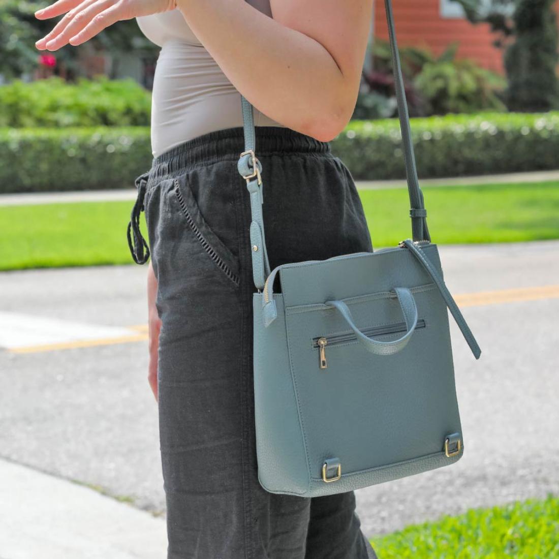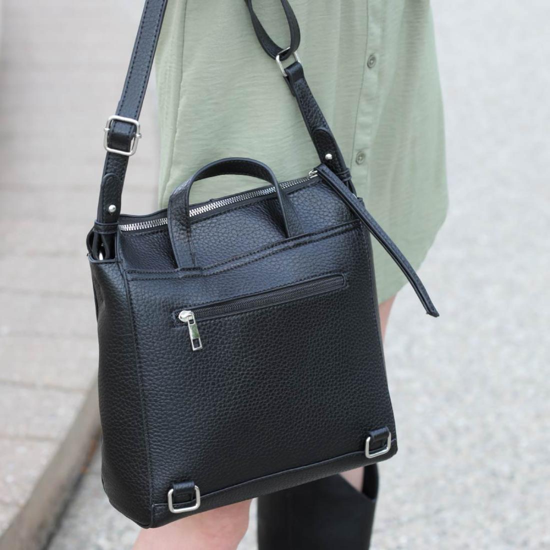 • Use both straps for a backpack, or switch to one strap for a crossbody or shoulder bag
