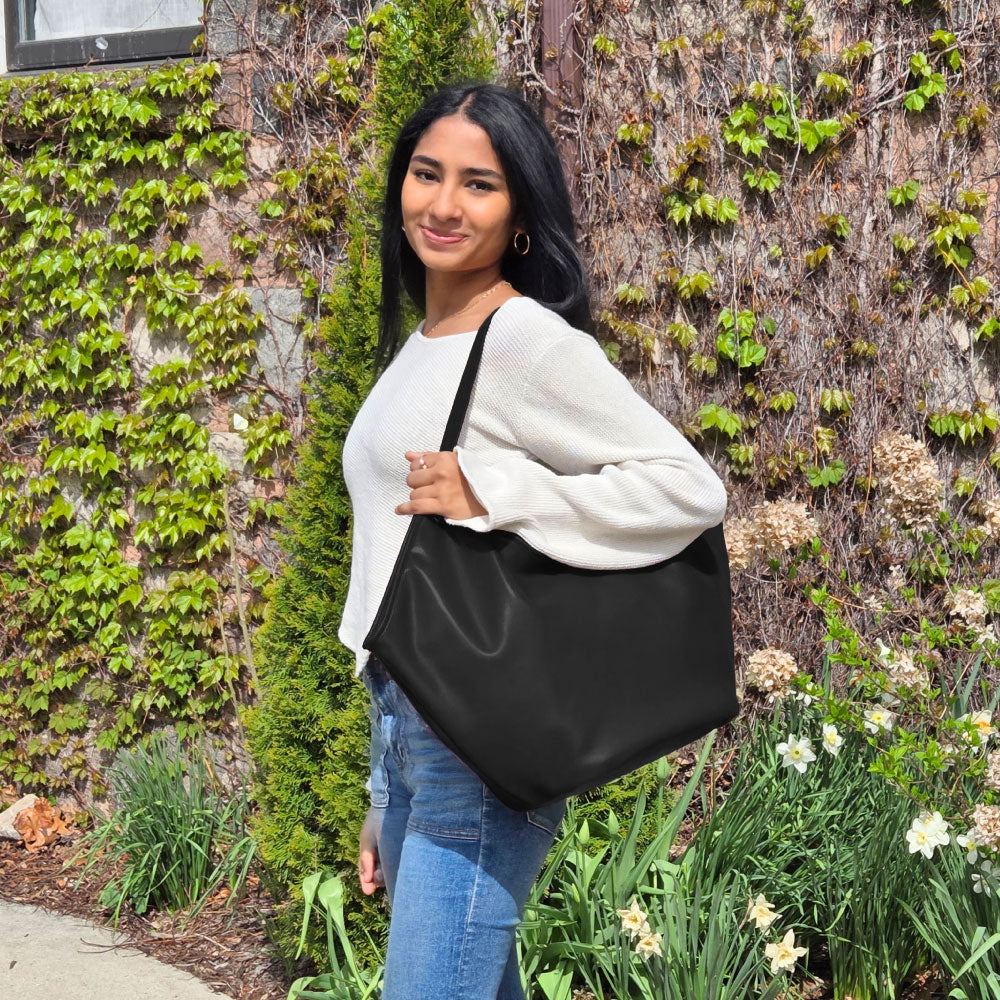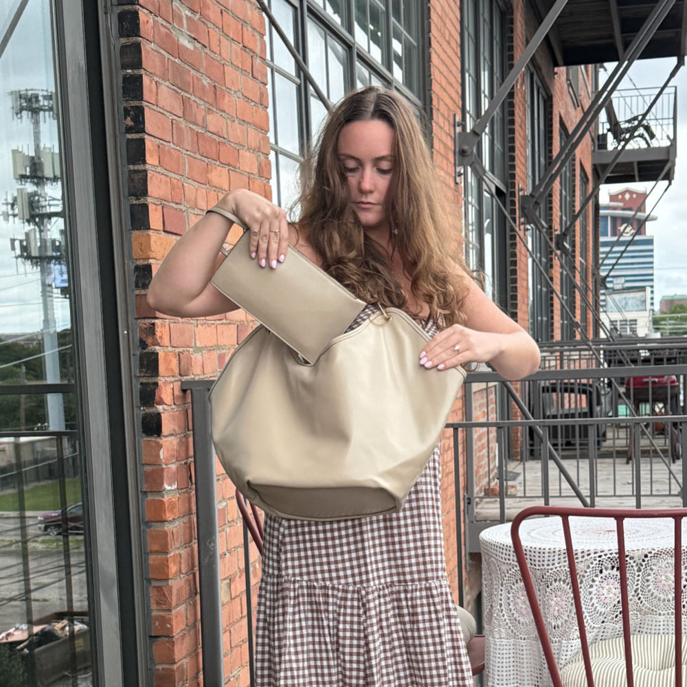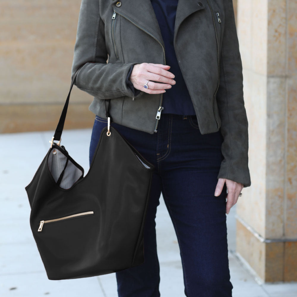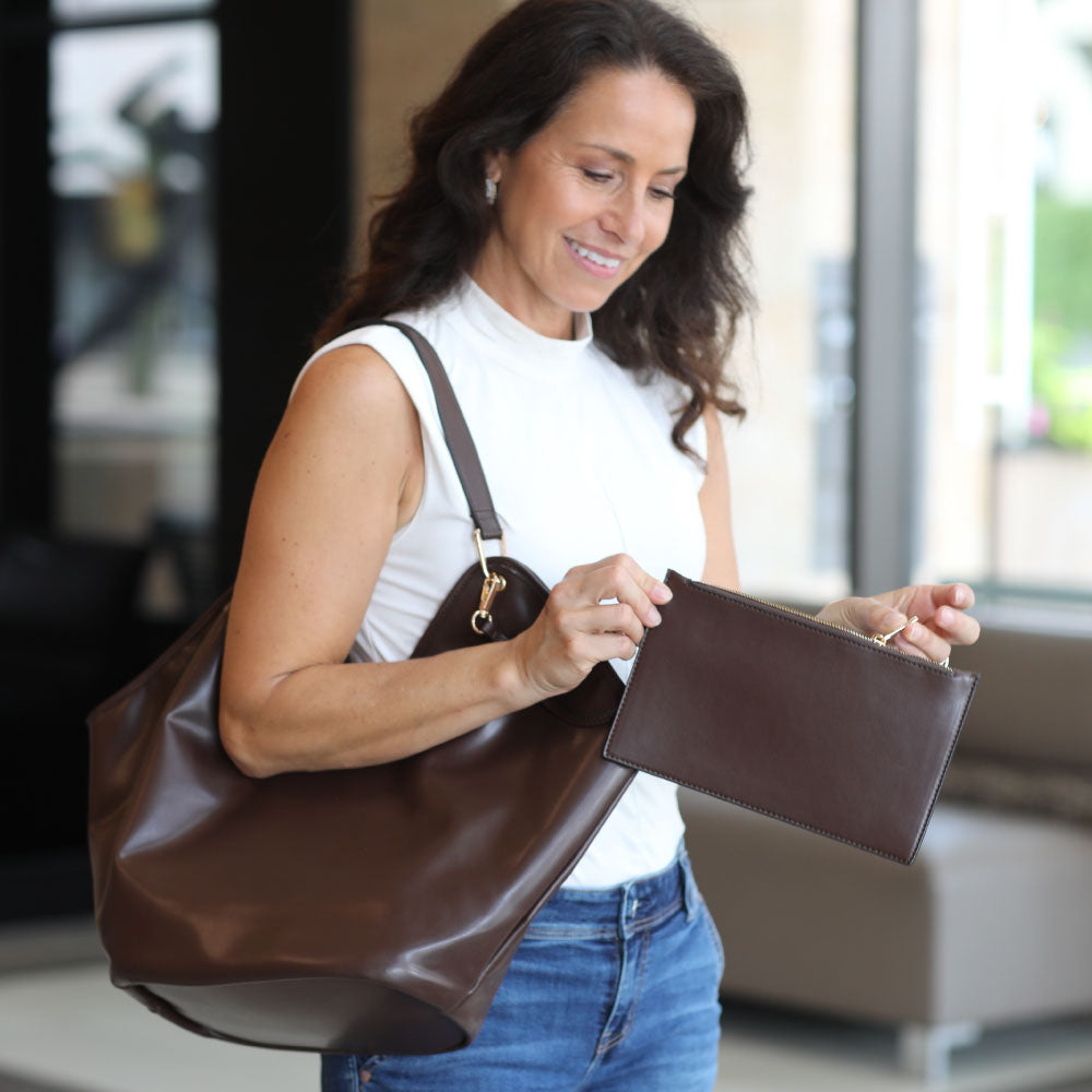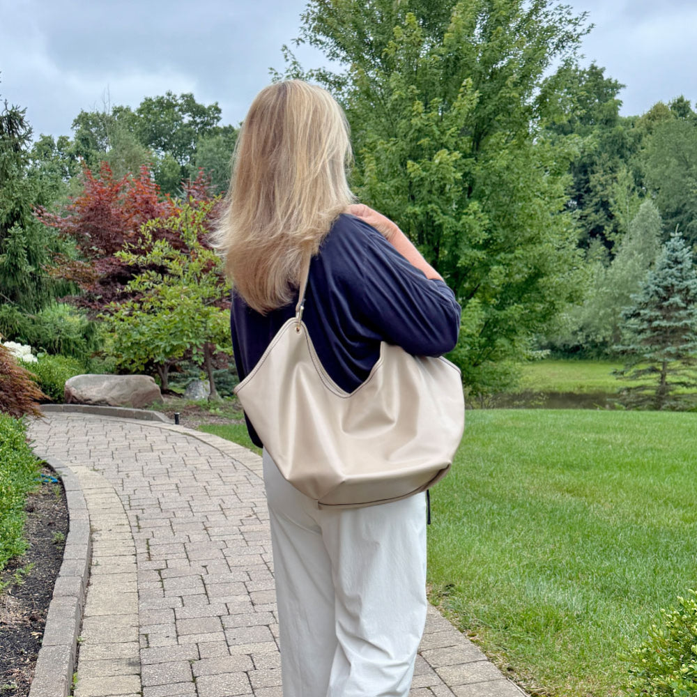 Effortless carry, elevated design. This soft, structured hobo is oversized but still extremely lightweight. You’ll find both exterior and interior zipper pockets in this bag, as well as an added envelope-shaped wristlet inside for easy grab-and-go moments.