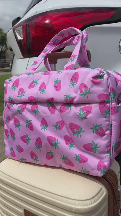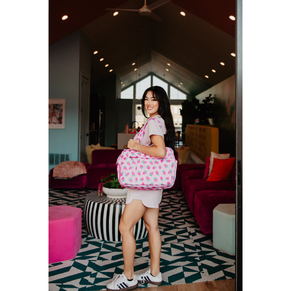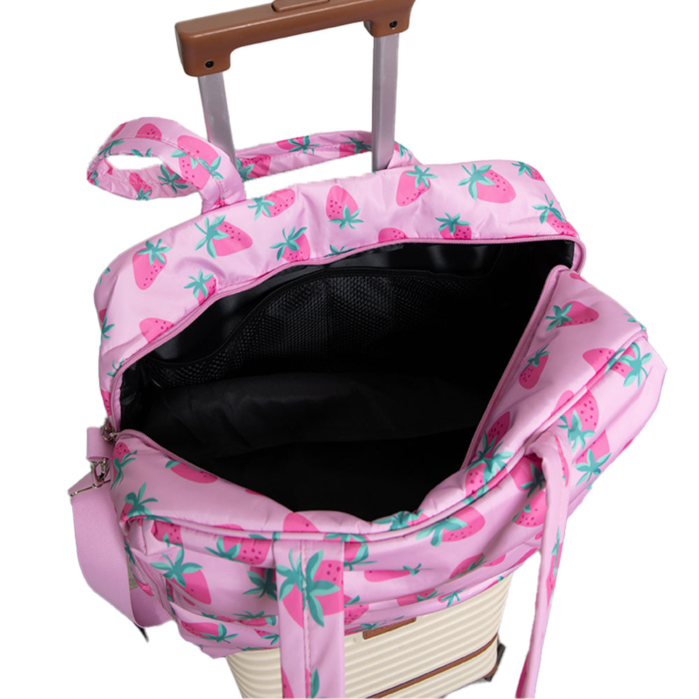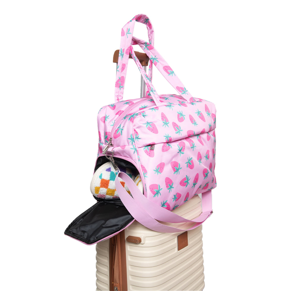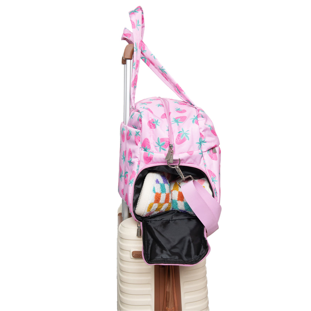 Your travel style just got a whole lot more adorable. This weekender bag comes equipped with a luggage pass-through sleeve, so you can pull your luggage with the weekender bag securely seated on top—no carrying necessary! It comes with a separate shoe compartment to keep your dailies clean and protect them from damage.