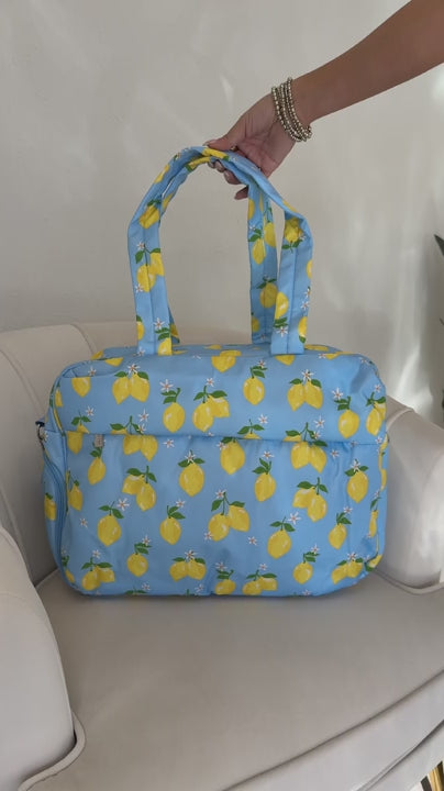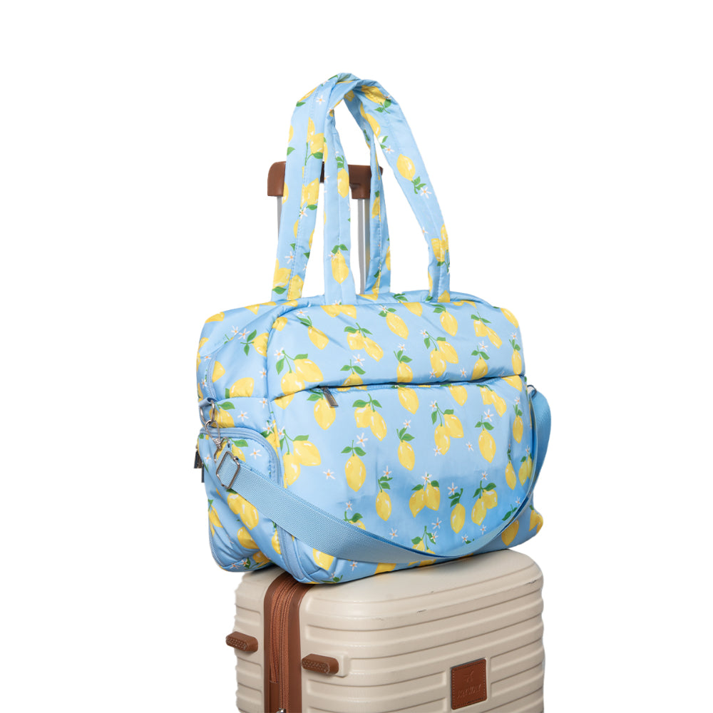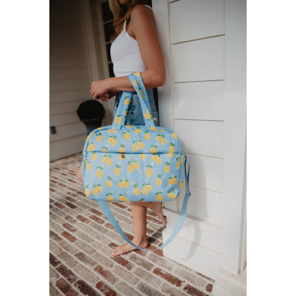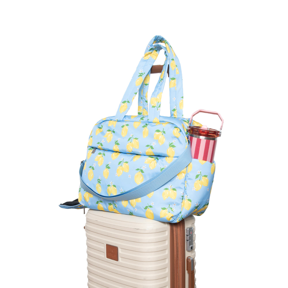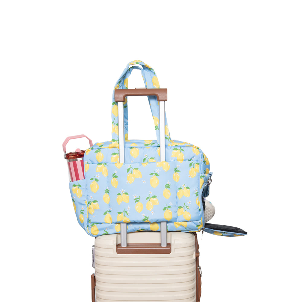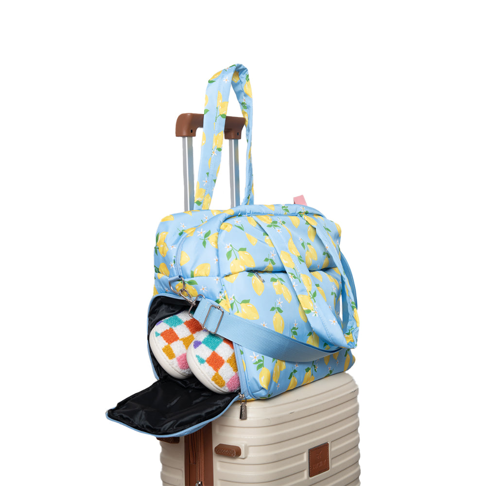 Your travel style just got a whole lot more adorable. This weekender bag comes equipped with a luggage pass-through sleeve, so you can pull your luggage with the weekender bag securely seated on top—no carrying necessary! It comes with a separate shoe compartment to keep your dailies clean and protect them from damage.