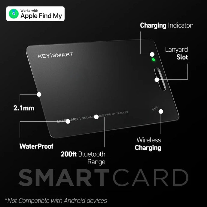 Never lose your wallet again with the SmartCard! With built-in Apple “Find My” technology, you can locate your lost items with SmartCard and track them directly from your phone. Designed to fit seamlessly into any wallet, bag, purse, or passport holder, the SmartCard can ensure your most valuable items never get lost.