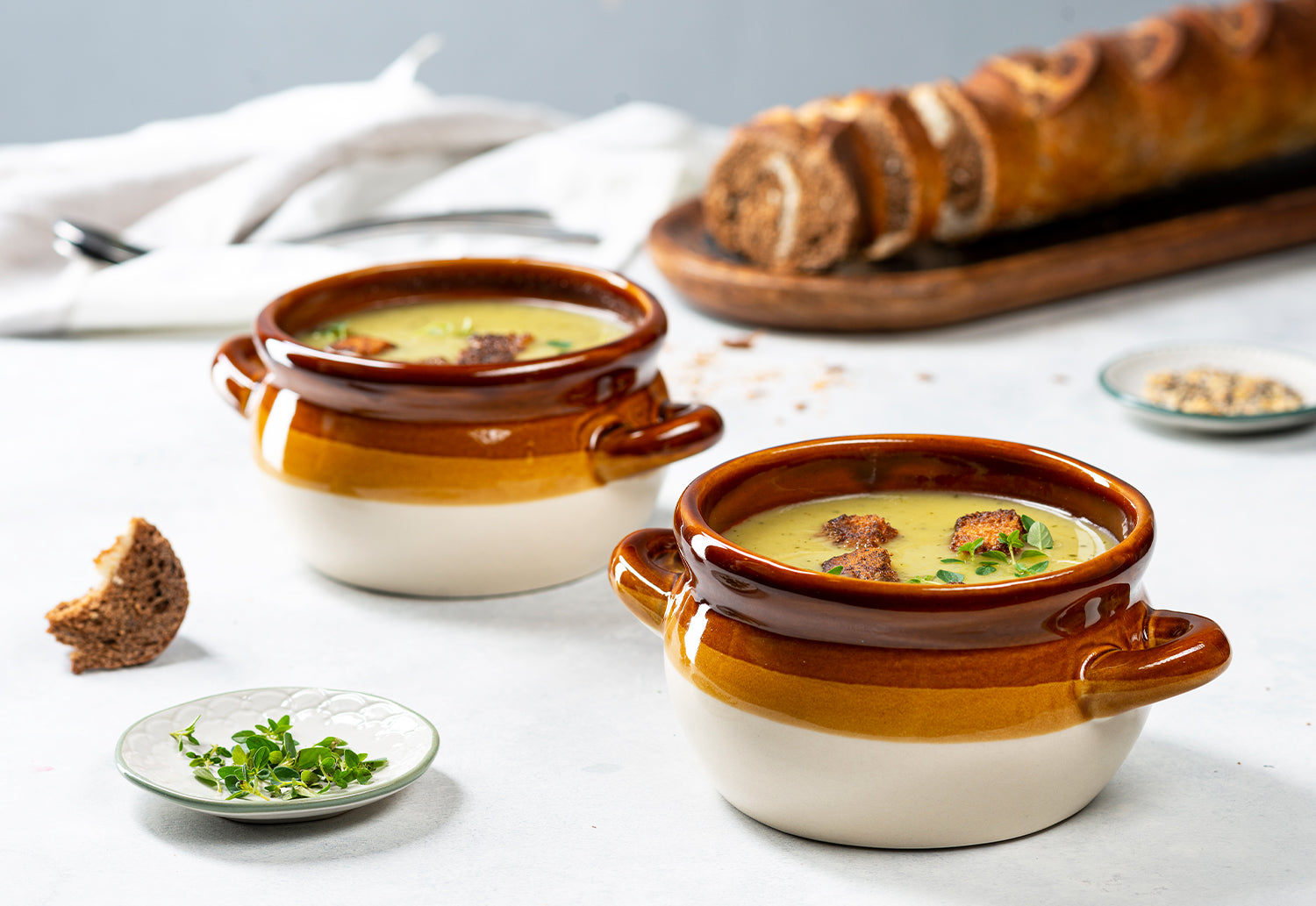 Bring comfort and style to the table with these classic ceramic French onion soup crocks. Sized for individual servings, they transition seamlessly from oven to table, making them ideal for soups, stews, casseroles, and more. Each crock combines durability, function, and rustic charm for everyday or special occasions.