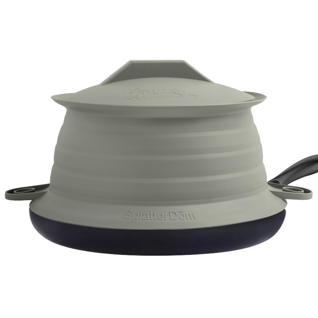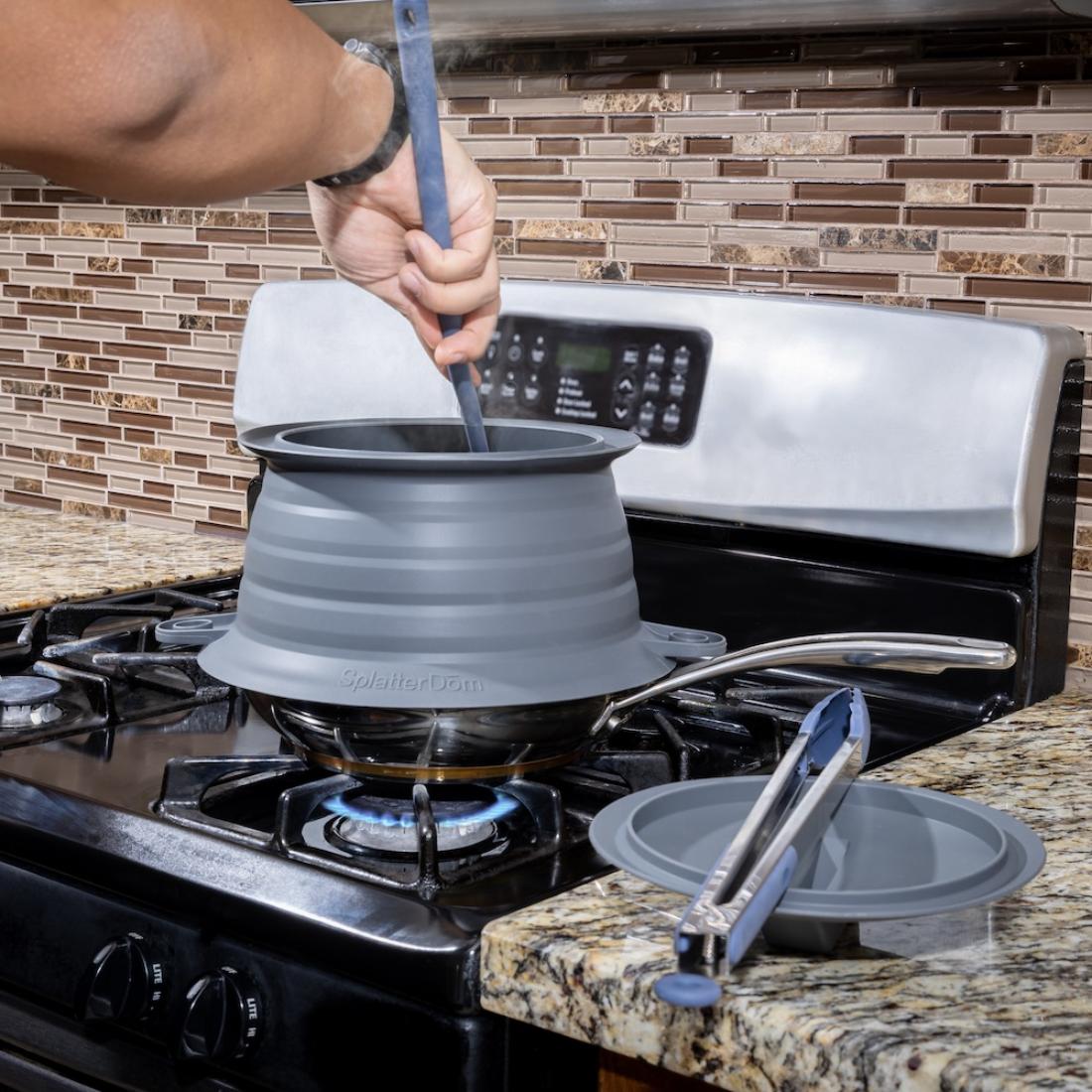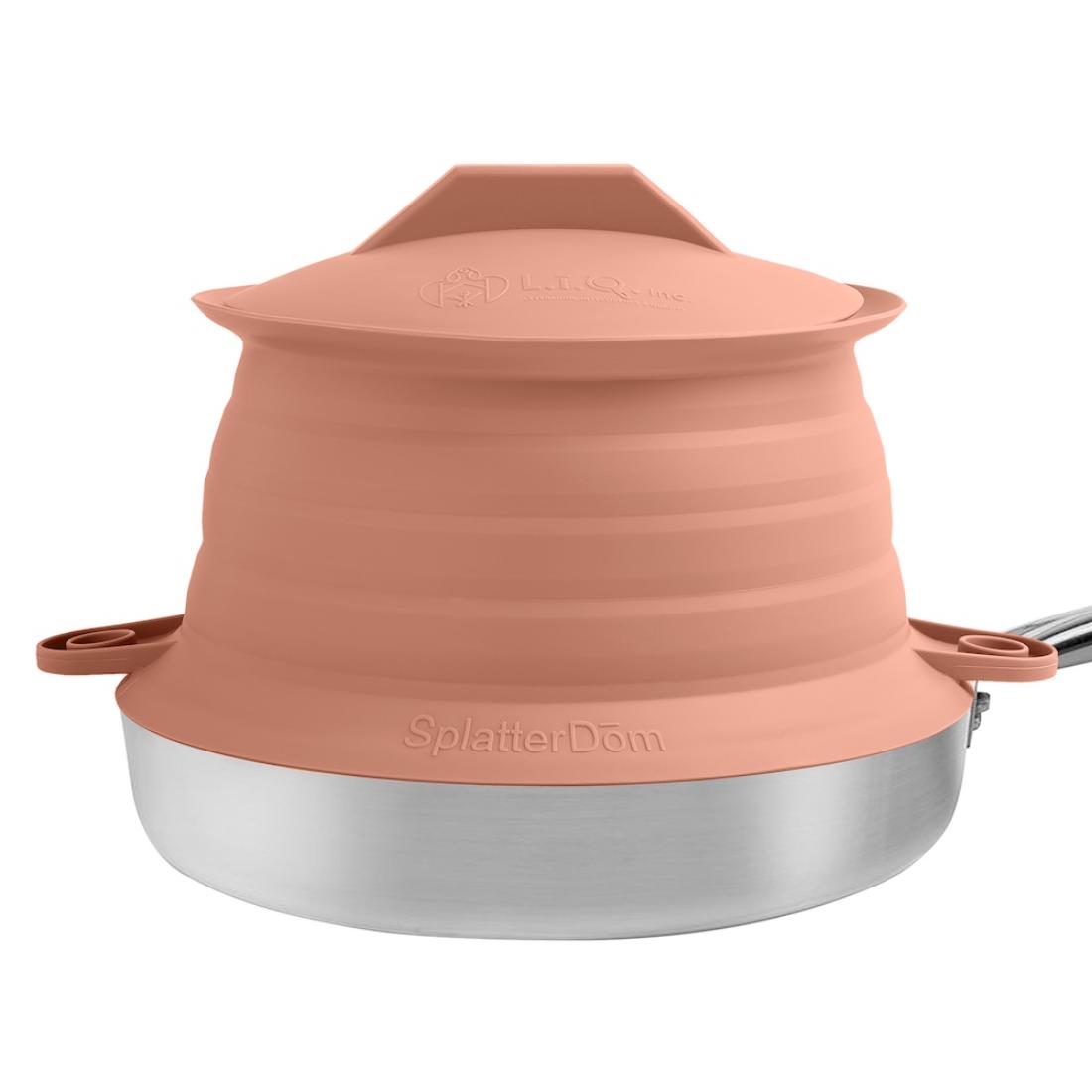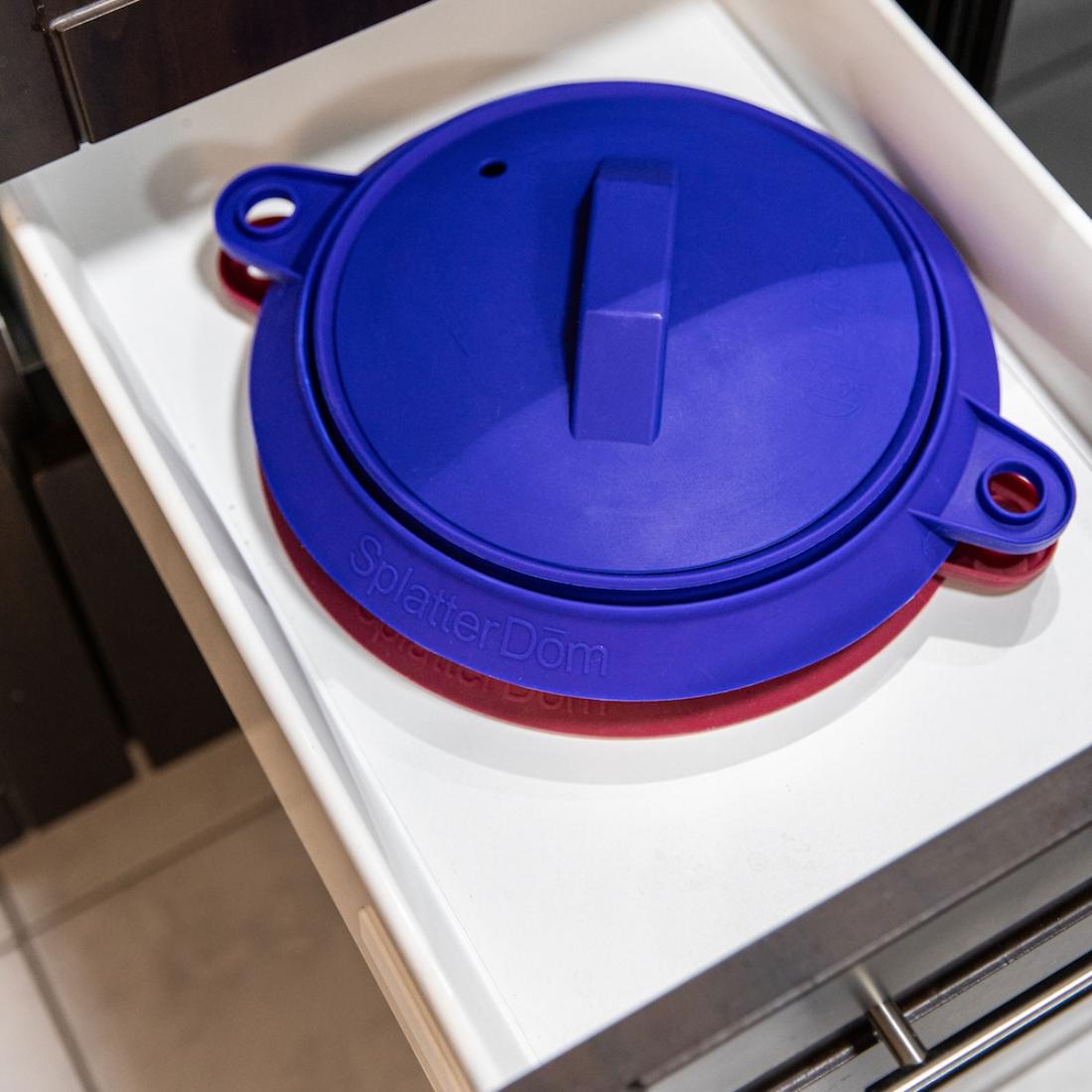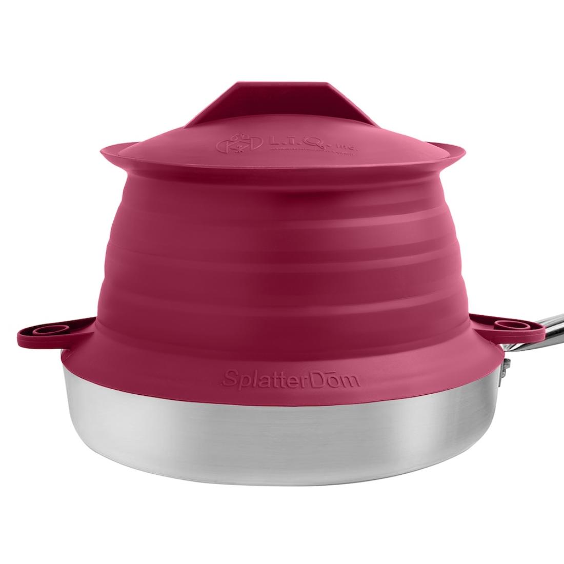 Meet SplatterDōm®, the patented, revolutionary, multifunctional stovetop splatter guard and microwave cover developed to protect your cooking area while providing uncompromised access to your food. It comes in two different sizes, each designed to fit multiple pots and pans. Use this versatile tool while you sauté, fry, sear, simmer, or boil, and enjoy limiting your mess but not your cooking!