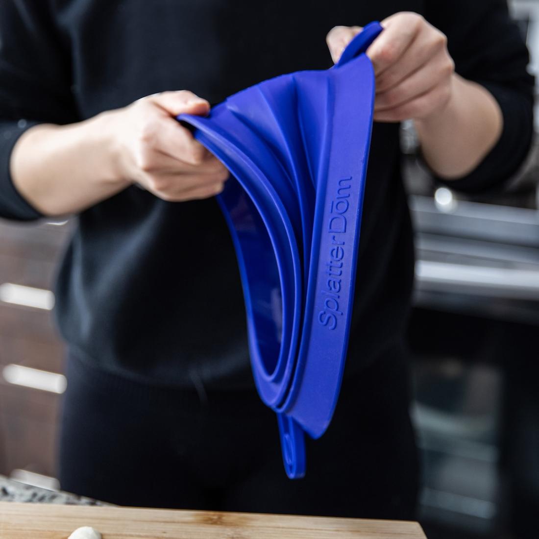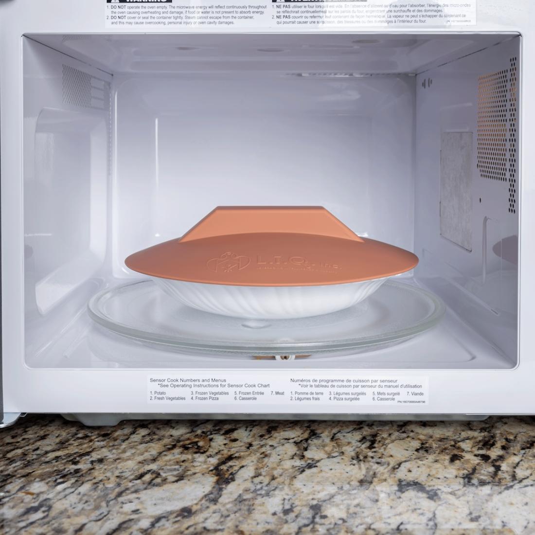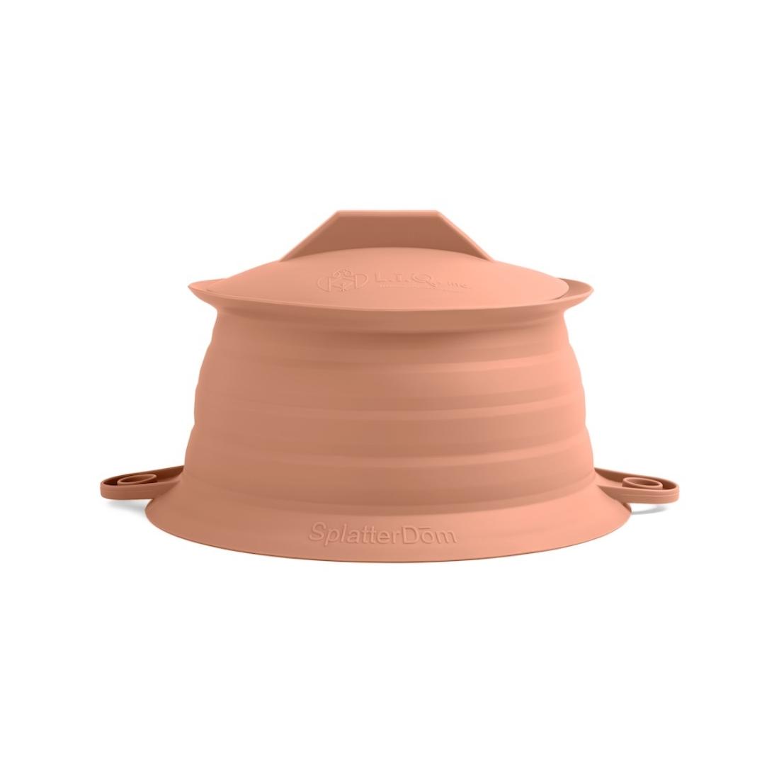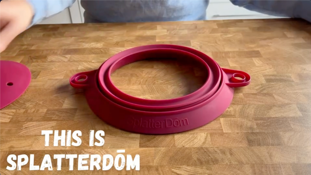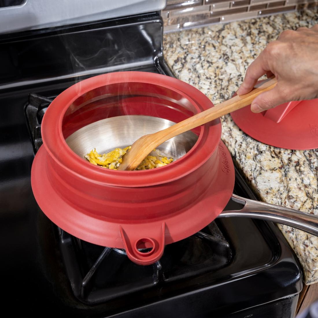 Meet SplatterDōm®, the patented, revolutionary, multifunctional stovetop splatter guard and microwave cover developed to protect your cooking area while providing uncompromised access to your food. It comes in two different sizes, each designed to fit multiple pots and pans. Use this versatile tool while you sauté, fry, sear, simmer, or boil, and enjoy limiting your mess but not your cooking!