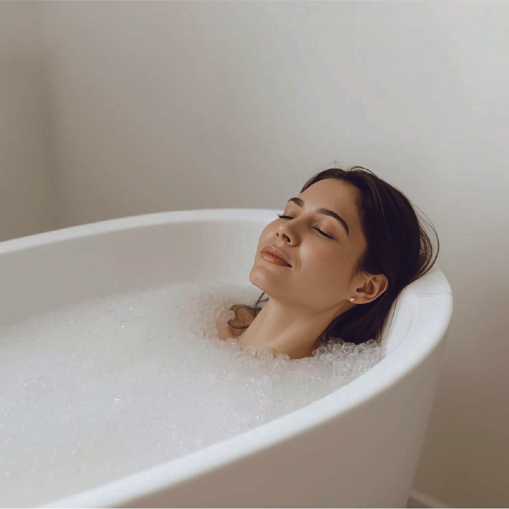 - Soak and relax in the magnesium-infused bath to help ease tension and restore calm