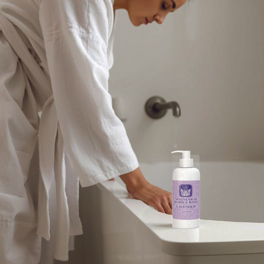 A luxurious, soothing blend infused with magnesium, aloe vera, chamomile, and lavender oil to promote relaxation and restore balance. This gentle, foaming formula cleanses and softens the skin while creating a spa-like bathing experience that helps melt away tension and leaves the body feeling calm, refreshed, and renewed.