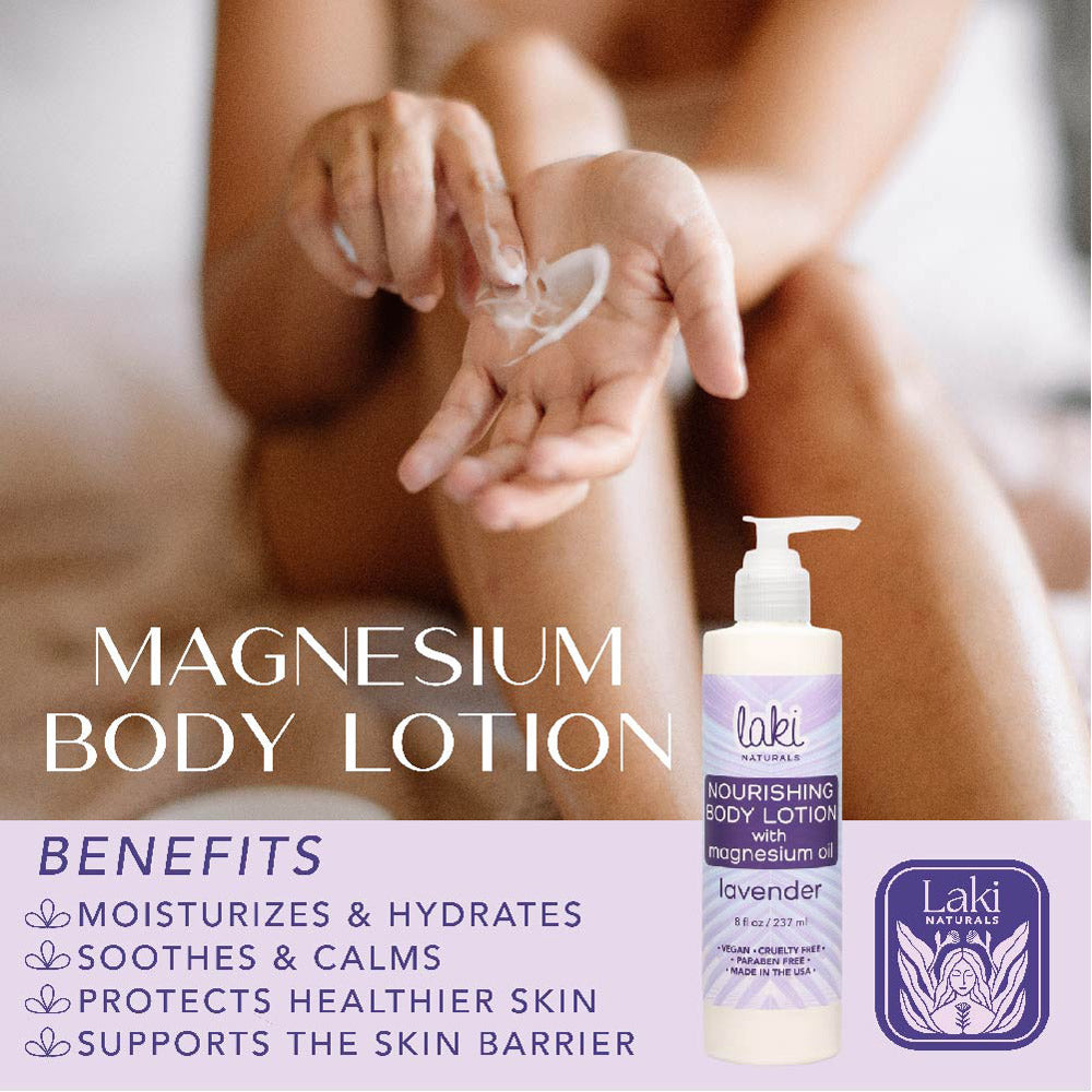 A luxurious, nutrient-rich lotion formulated to hydrate, soothe, and replenish the skin. The lightweight texture easily absorbs delivering deep moisture without residue. Infused with magnesium and natural botanicals, this blend promotes relaxation and leaves skin feeling soft, supple, and refreshed.