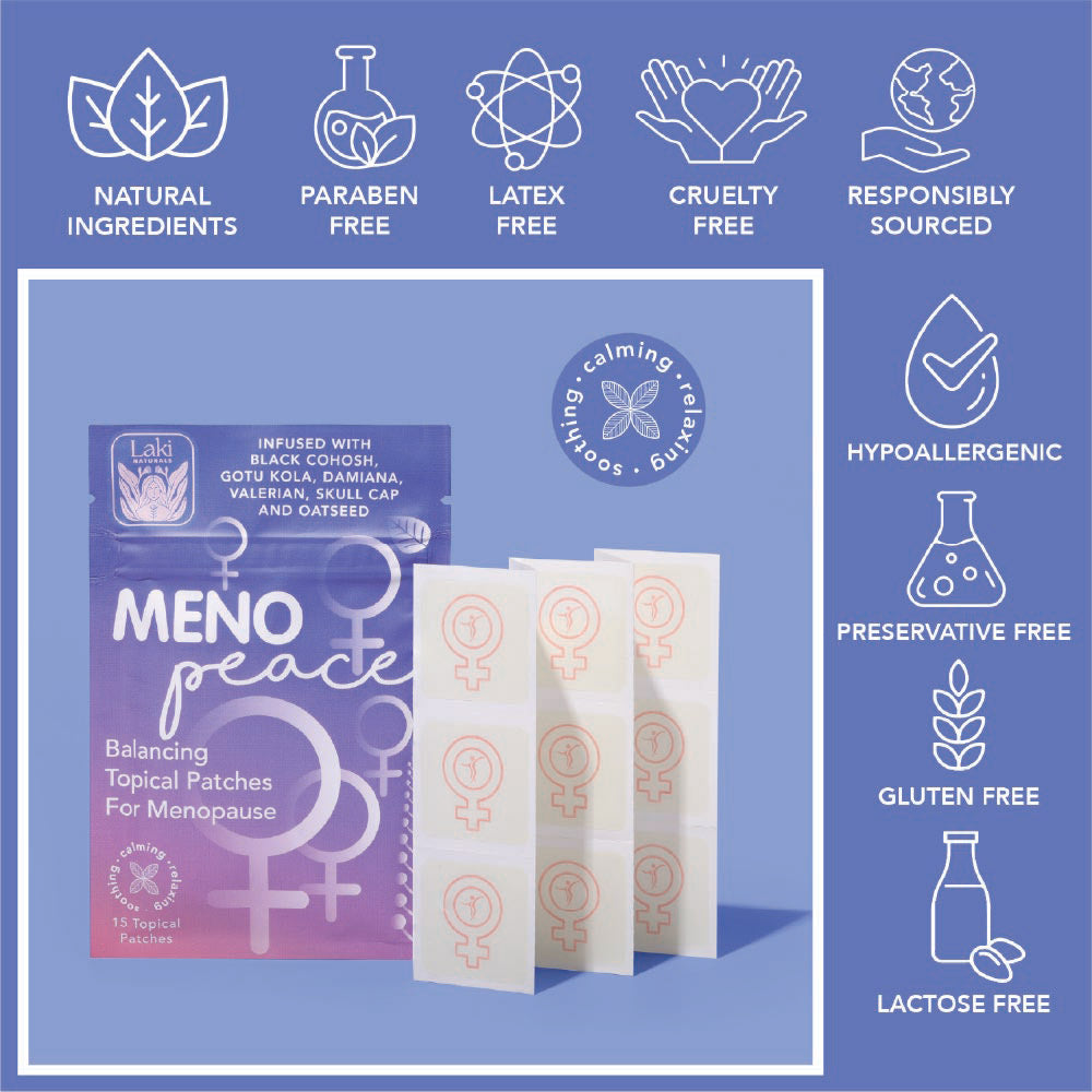 Embark on a journey of natural relief with the Meno-Peace Topical Wellness Patch, thoughtfully designed to ease the transition through menopause. This innovative patch delivers a harmonious blend of botanical ingredients, carefully selected to provide targeted support during this transformative phase of life.