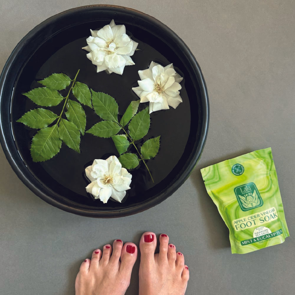 A restorative blend crafted to calm, detoxify, and hydrate tired, overworked feet. Apple cider vinegar helps soften calluses, reduce odor, and refresh the skin, while coconut oil and Hawaiian sea salt nourish and cleanse. Infused with soothing Epsom salts, this indulgent soak helps melt away daily tension and leaves feet feeling renewed and comforted.