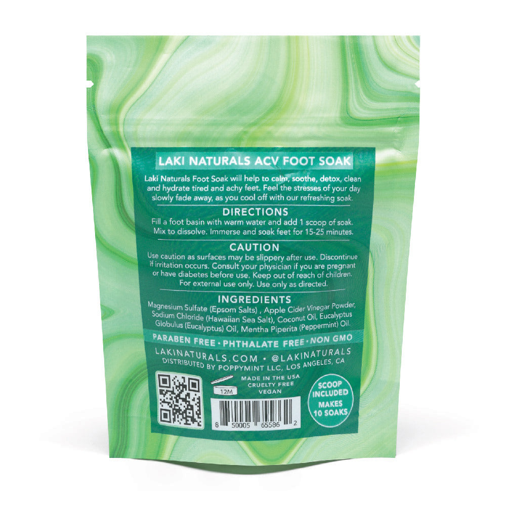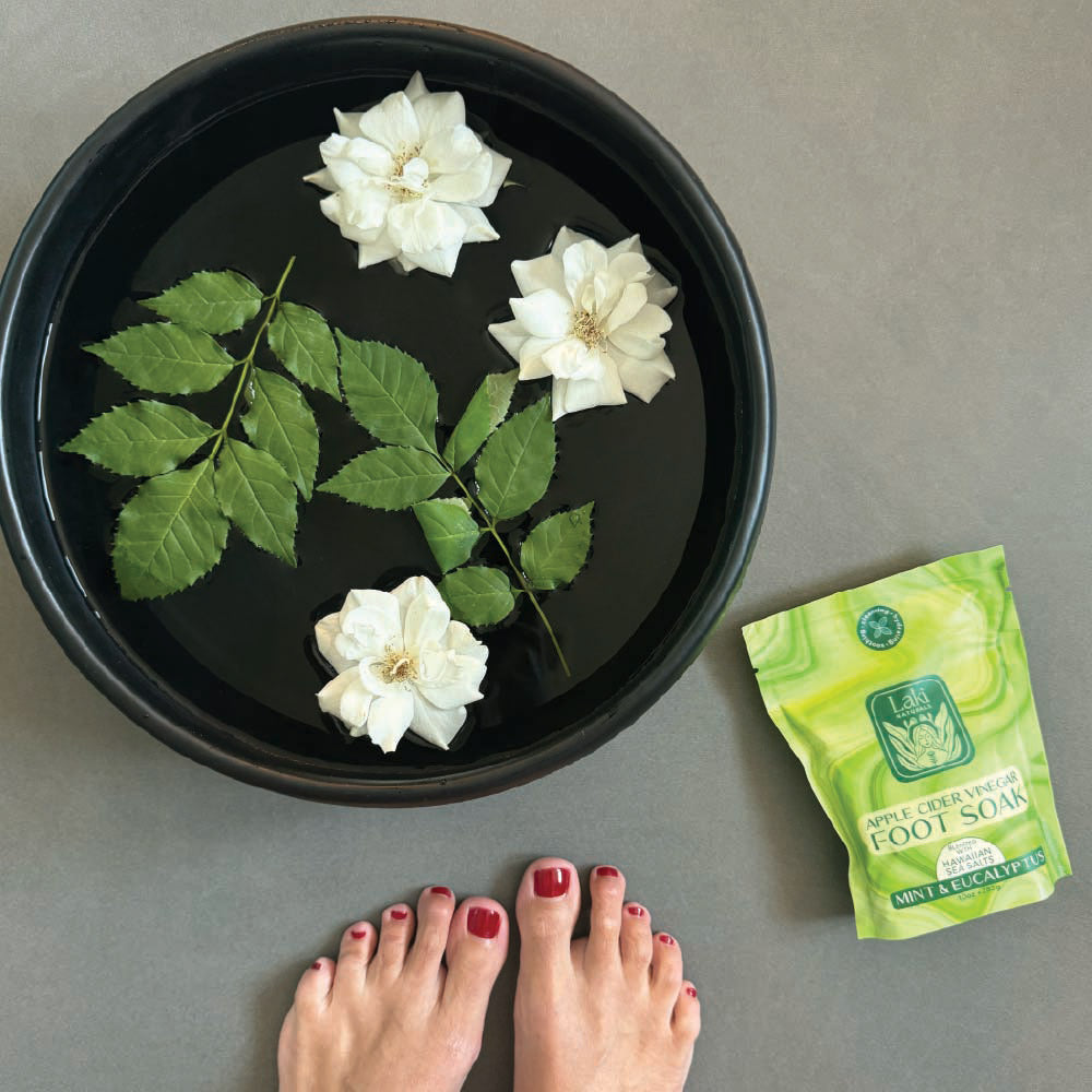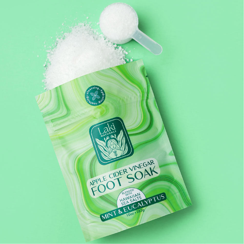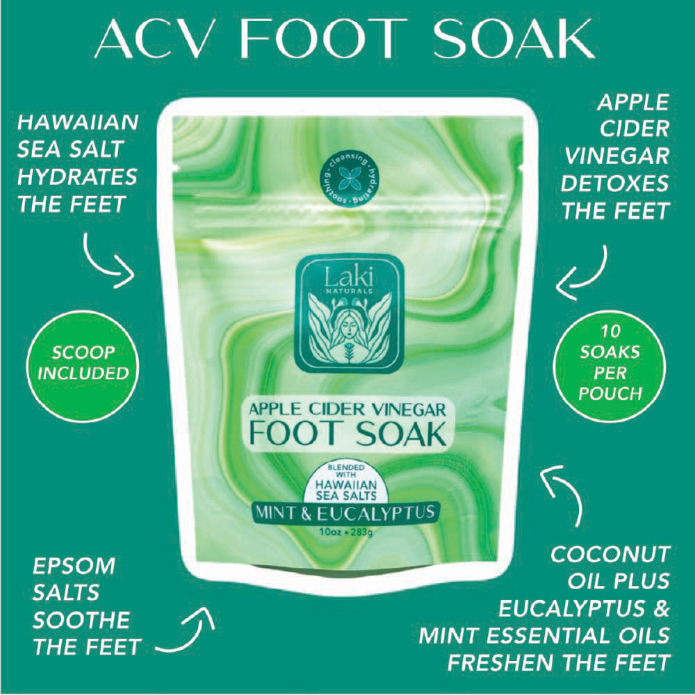 A restorative blend crafted to calm, detoxify, and hydrate tired, overworked feet. Apple cider vinegar helps soften calluses, reduce odor, and refresh the skin, while coconut oil and Hawaiian sea salt nourish and cleanse. Infused with soothing Epsom salts, this indulgent soak helps melt away daily tension and leaves feet feeling renewed and comforted.