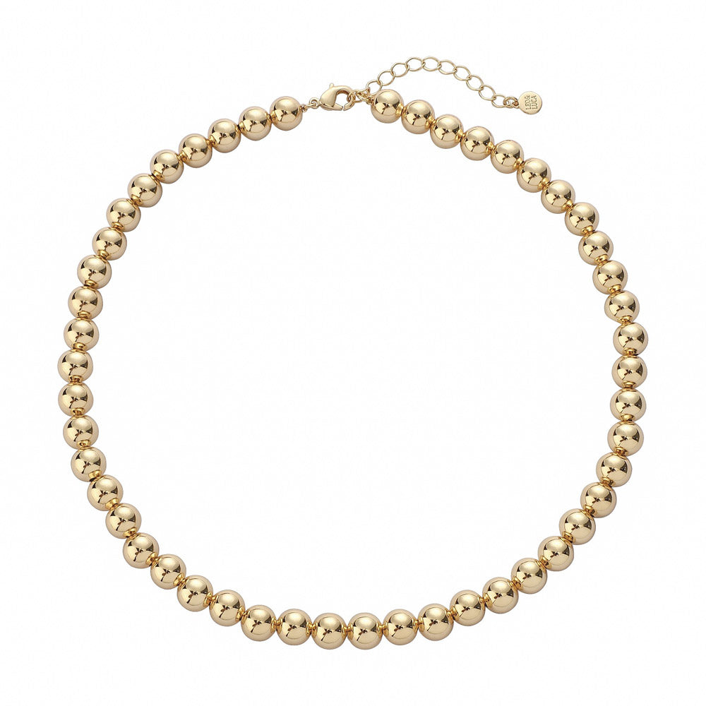 The Large Ball Necklace is a bold take, designed to turn heads with its oversized, high-shine spheres. Striking yet effortless, this statement piece balances modern edge with timeless elegance.