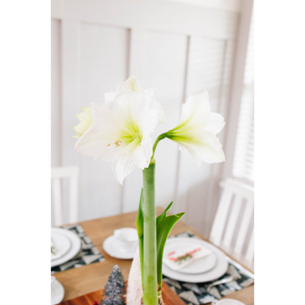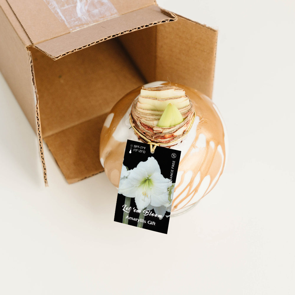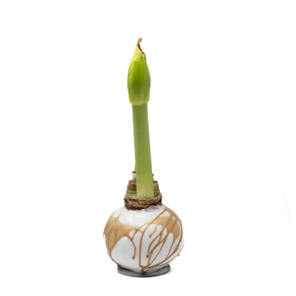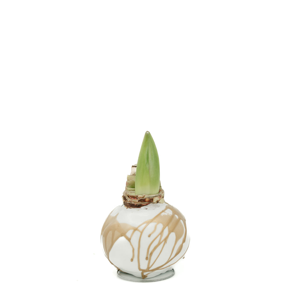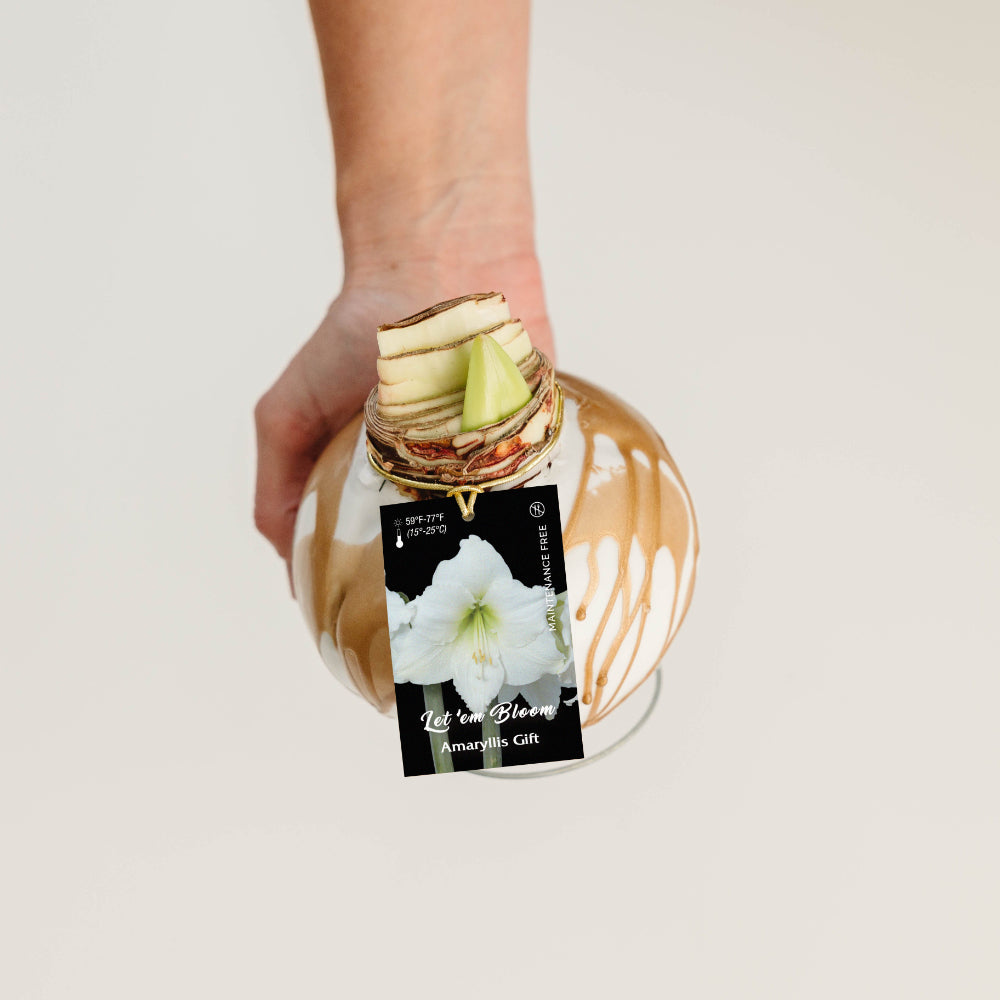 This amaryllis flower bulb is farmed in the coastal desert valleys of Peru, at the base of the Andes mountains, offering the ideal environment for growing the biggest and healthiest bulbs. This living bulb requires no watering or soil to experience its full blooming cycle—it’s activated by exposing it to temperatures maintained above 65° F. Simply arriving at a temperature-controlled home, office, or other space brings this bulb to life!