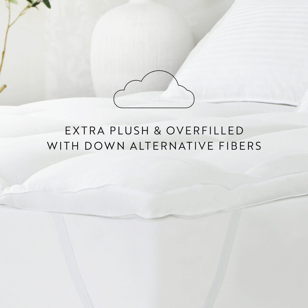 Give your bed an extra cloud of comfort with this 3” ultra-plush mattress pad. Generously filled with micro plush down alternative fiber, this pad adds softness to your bed. The baffle box stitch design ensures even distribution and support. The quality yarns, twice as durable as cotton, are super soft to the touch.
