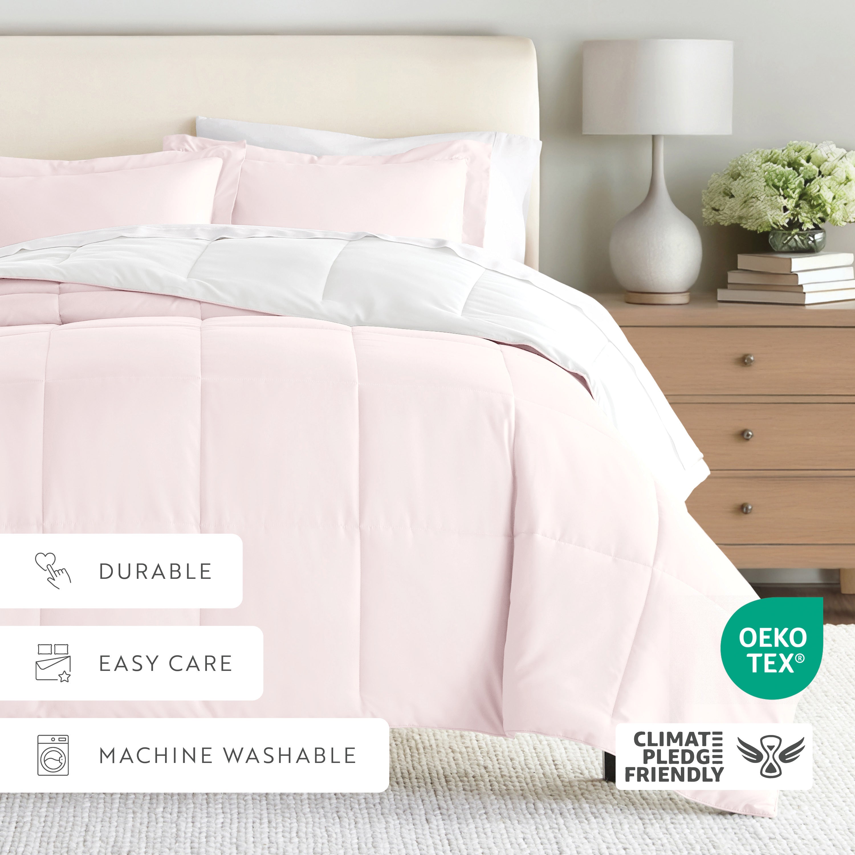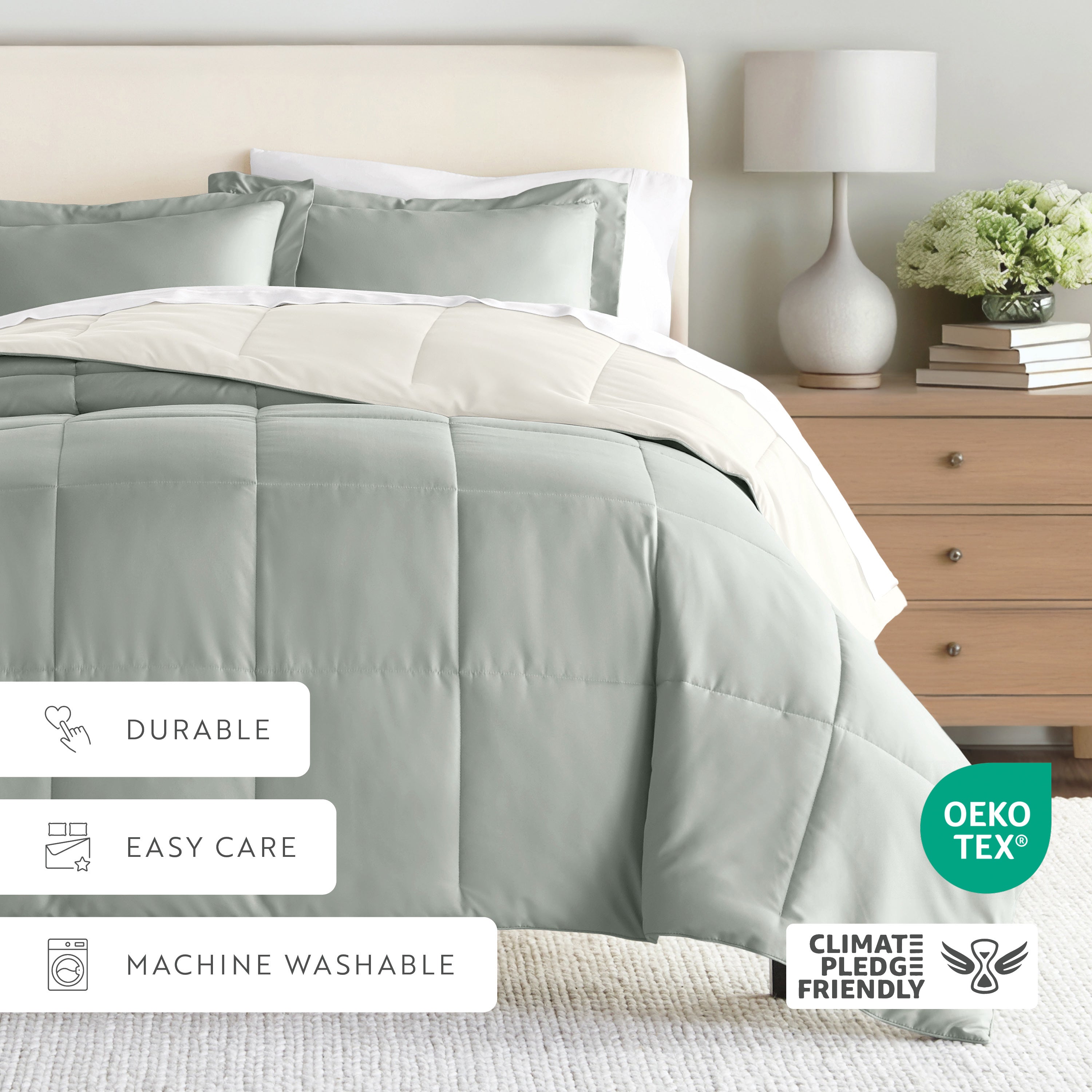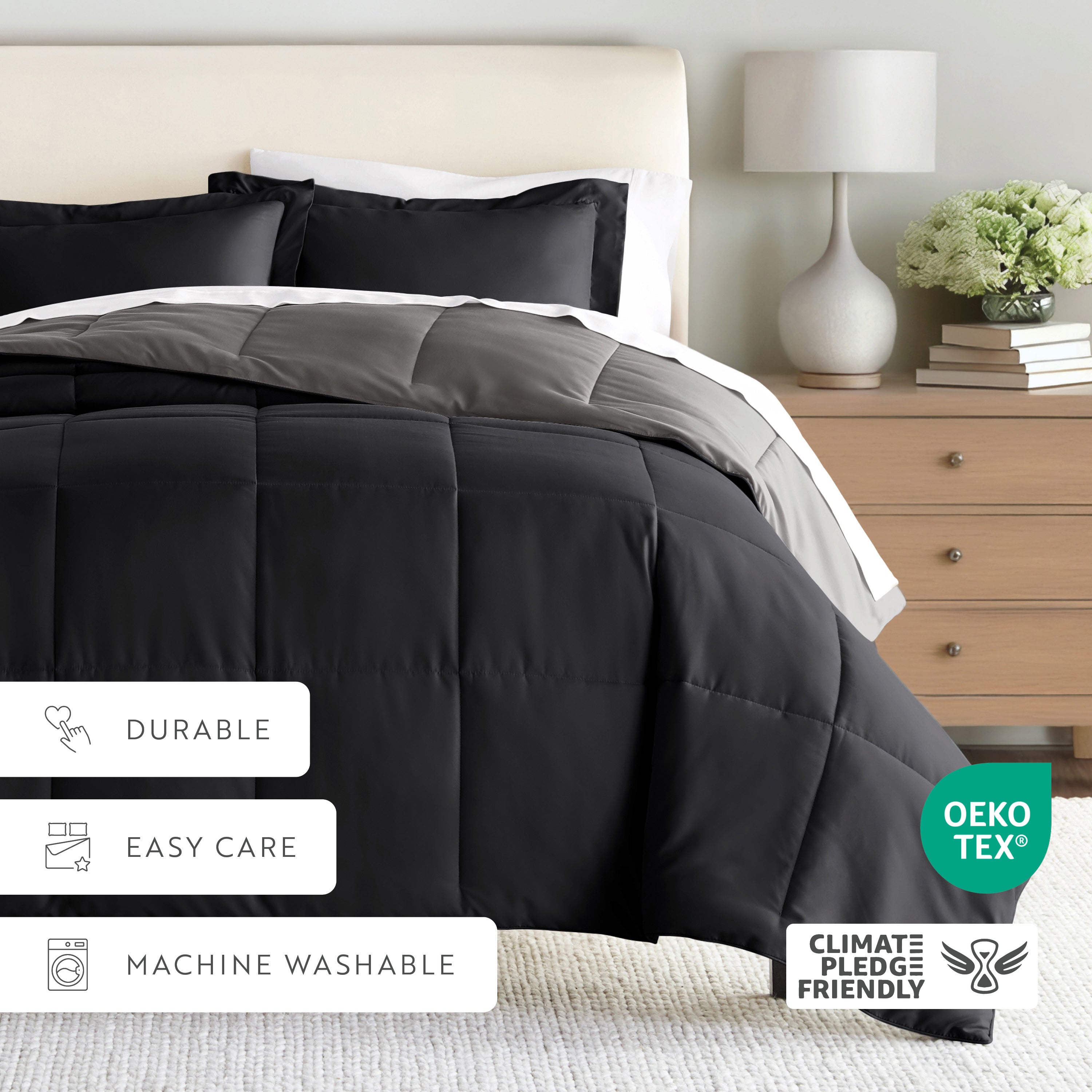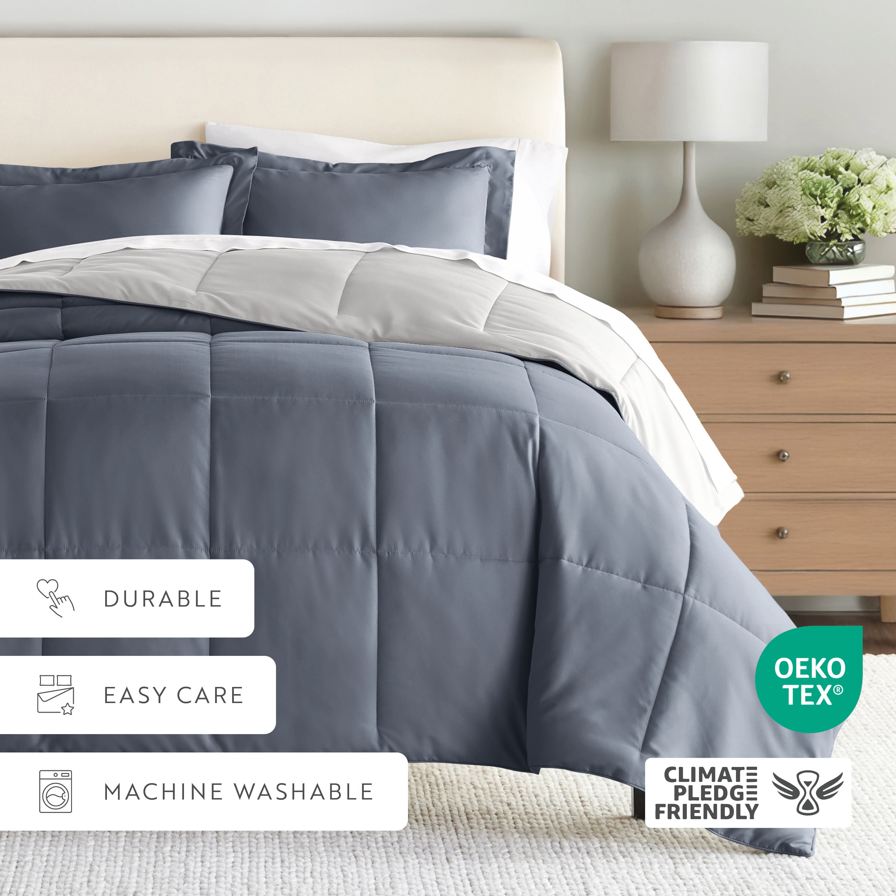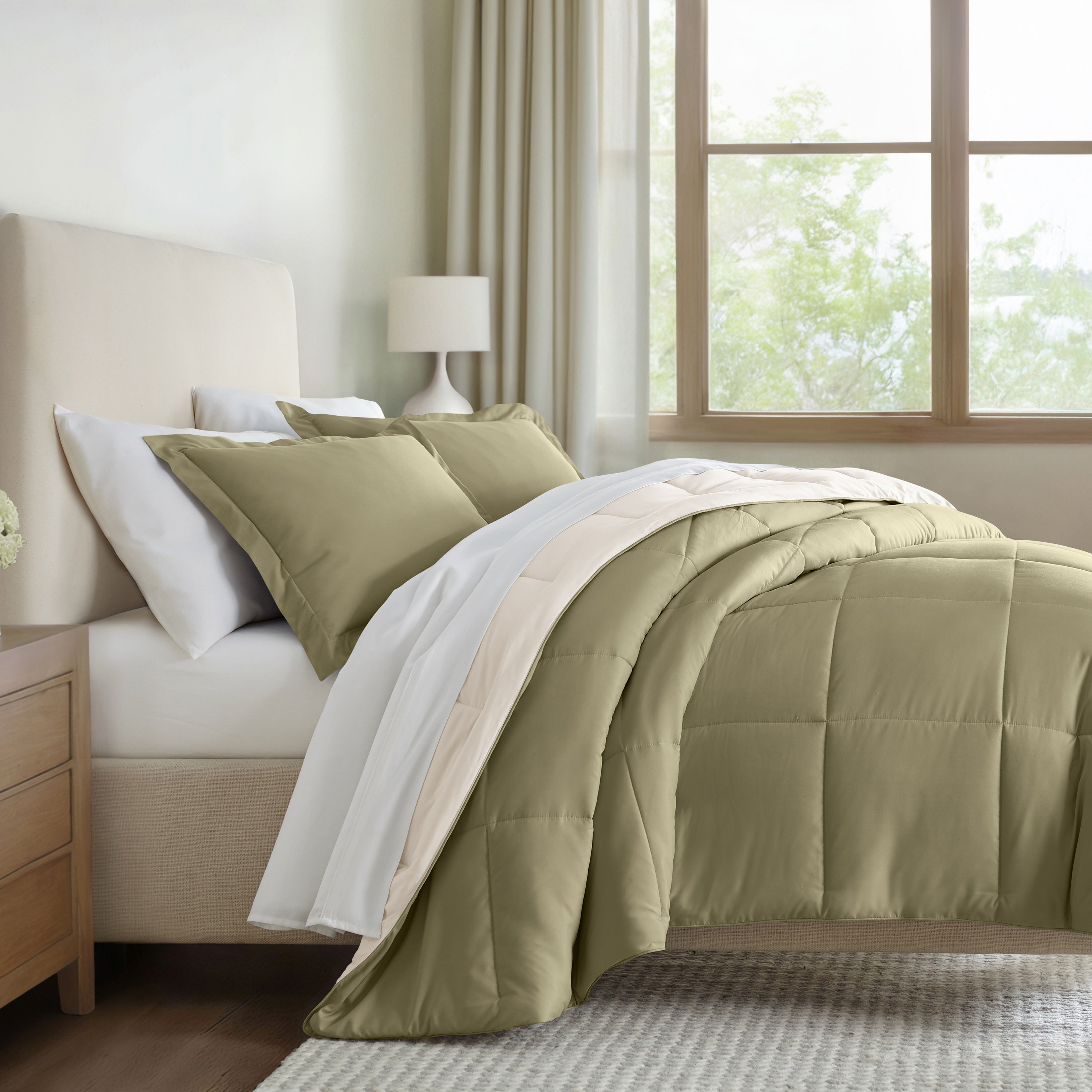 Give your bedding a brand new look and feel with this lightweight, all-season comforter set. Presenting a down-alternative quality, its incredible softness makes it the ideal comforter to keep you cozy all year round. Featuring a reversible design of aesthetically matched colors, this set is ideal for making quick style changes to your sleep space!