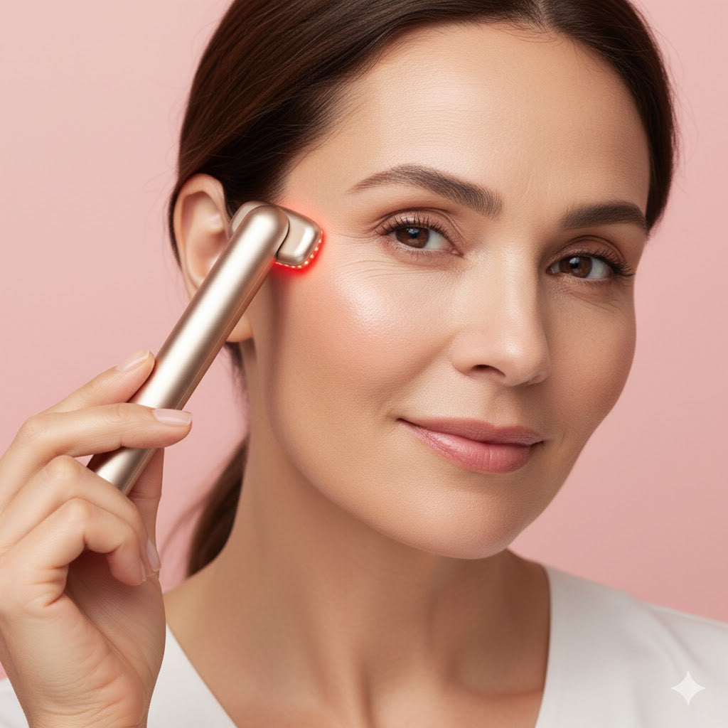 • Red LED (630 nm): Helps firm skin, boost collagen, brighten tone, and soften fine lines