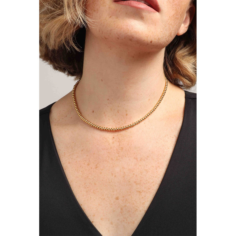 The Crown Choker features smooth, round beads strung on a delicate chain for a comfortable, long-lasting fit. Simple yet stylish, it's ideal for adding a touch of sophistication to your everyday look.