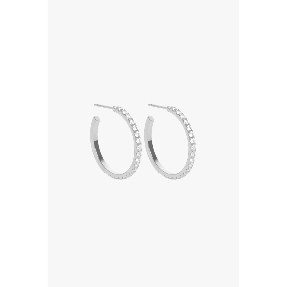 Elevate your style with these thin geometric stud hoops adorned with simulated diamond details. Their sleek design and sparkling accents make them a stunning accessory that adds a touch of elegance to any look.