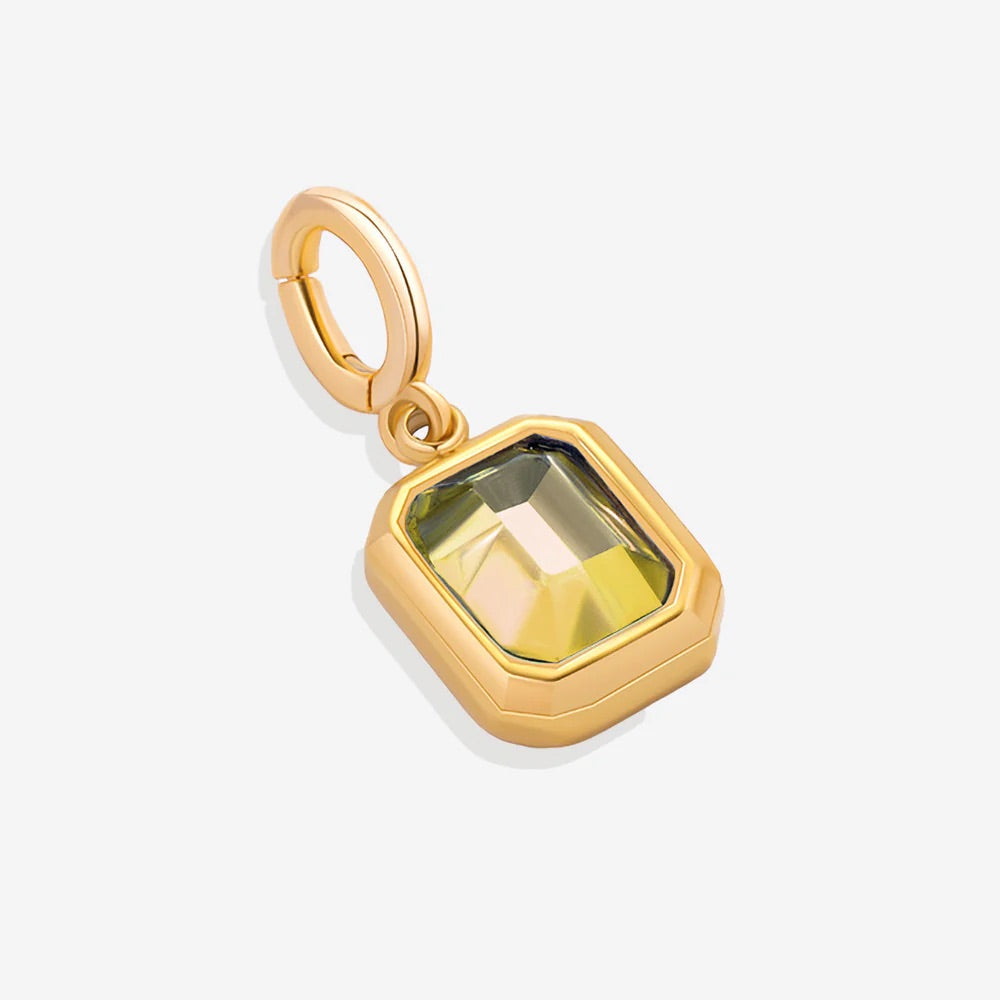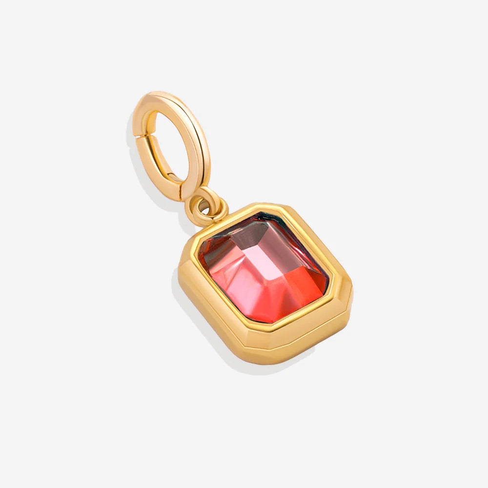 The Baguette Birthstone Charm features a stunning baguette-cut gemstone that adds a touch of elegance and personalization to your jewelry collection. This charm can be easily attached to bracelets or necklaces, allowing you to customize your accessories with meaningful significance.