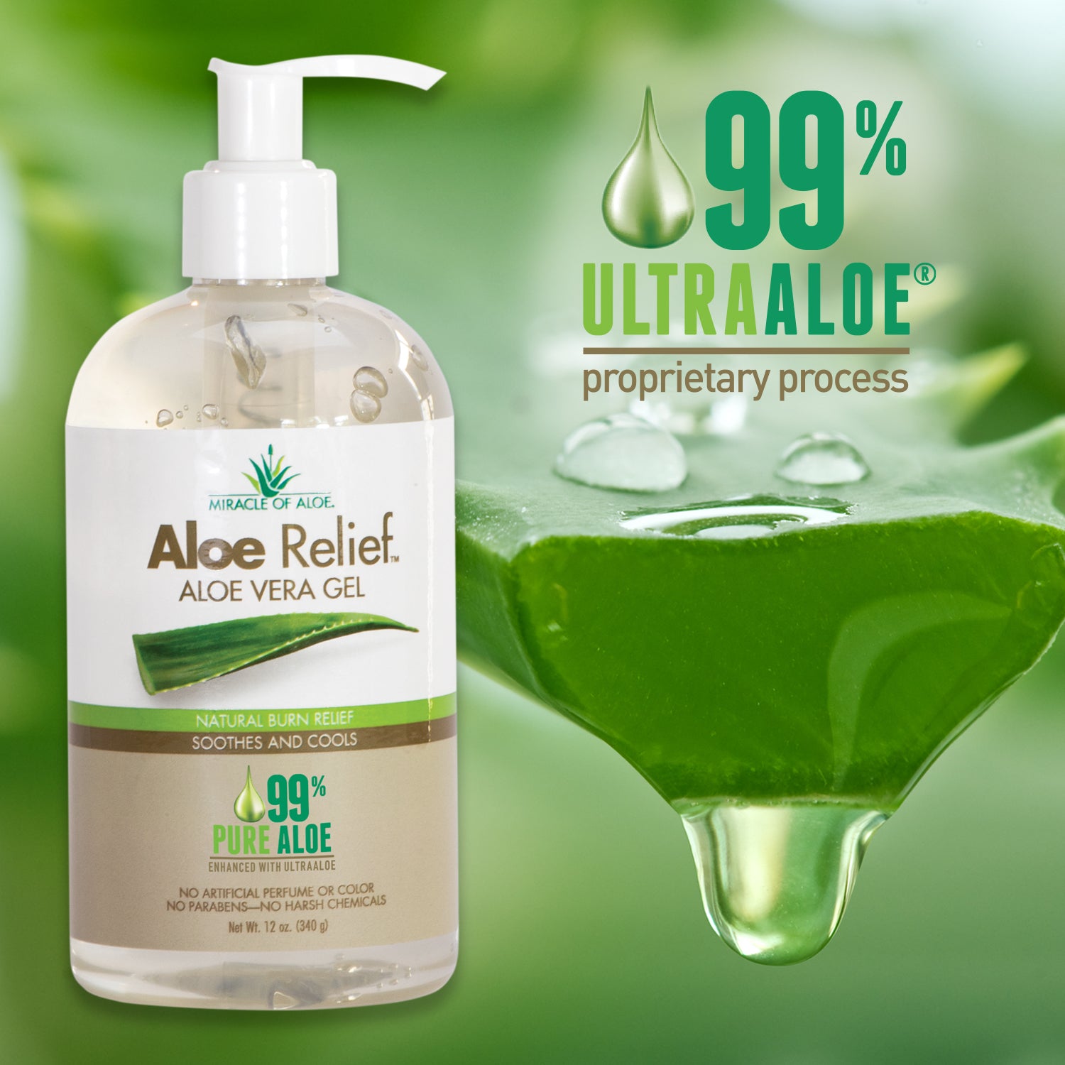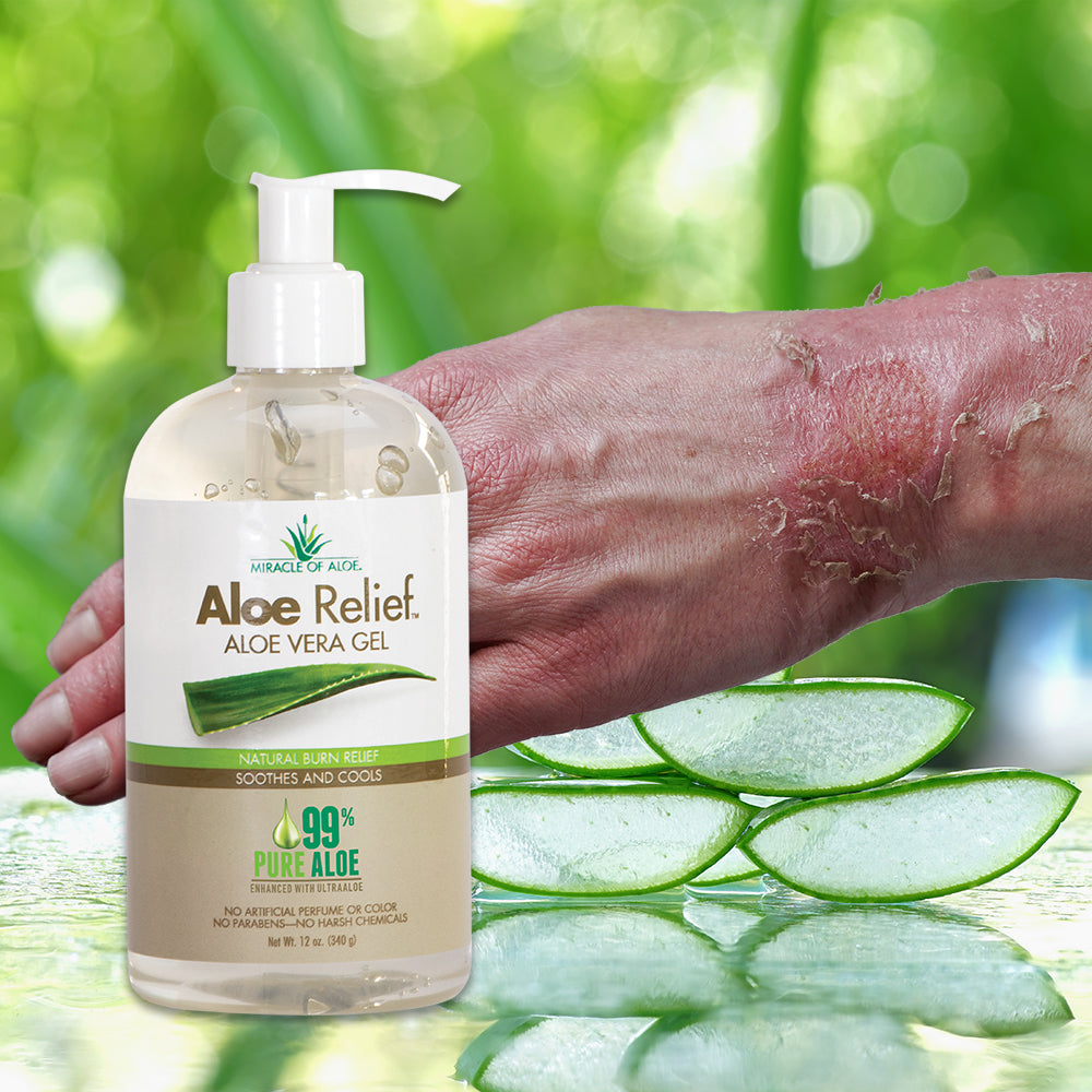 This thick, rich gel is cold-pressed from mature, freshly harvested aloe plants and naturally enhanced into the exclusive UltraAloe® gel. It delivers fast, cooling comfort to help soothe skin exposed to sun, wind, heat, and everyday environmental stressors. If you don’t have a live aloe plant at home or fresh gel in the fridge, Aloe Relief with 99% pure UltraAloe® is the next best thing.