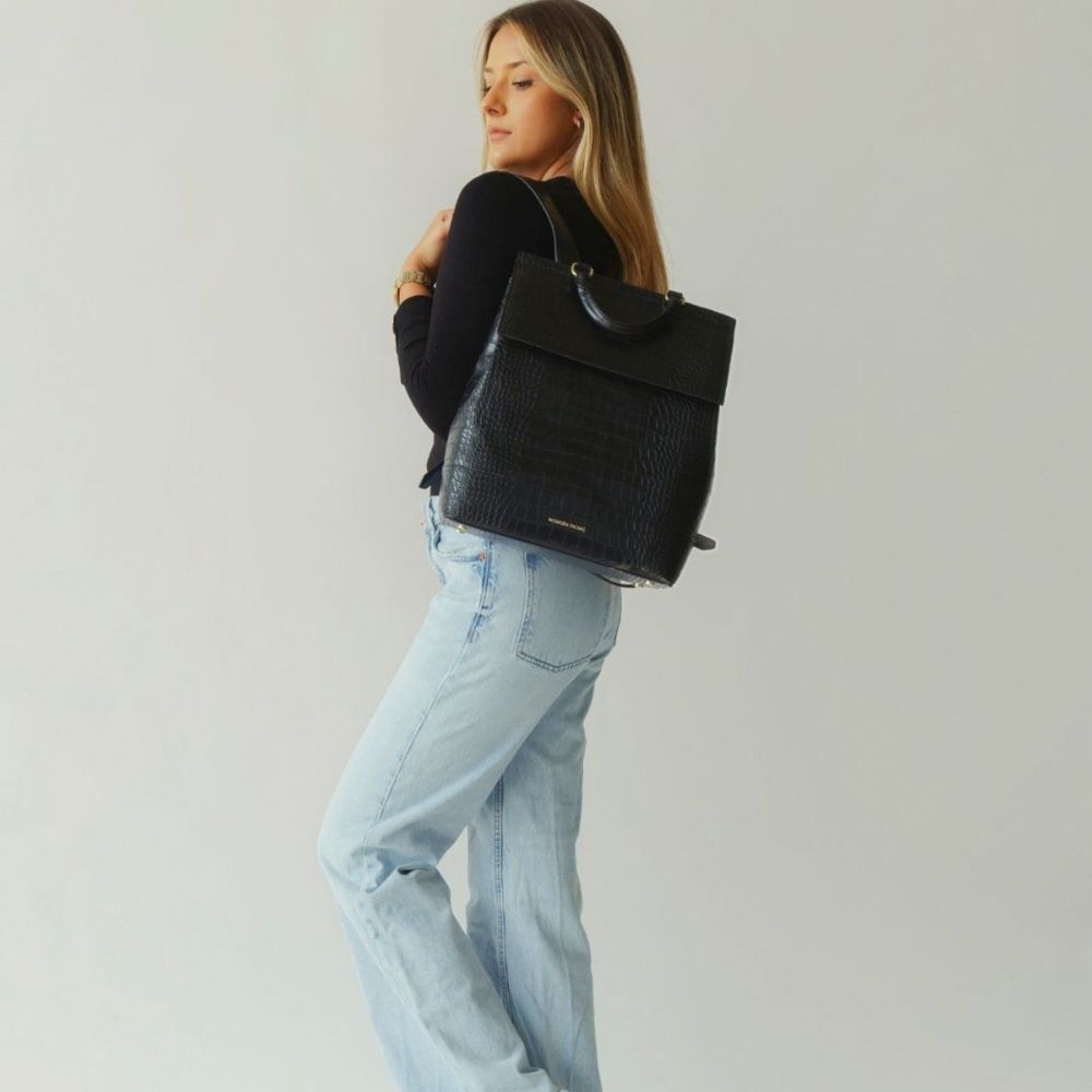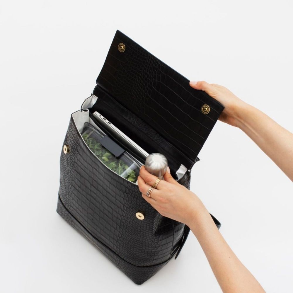 A chic, vegan leather backpack with a padded laptop sleeve and insulated compartment, ideal for carrying your laptop, lunch, and more. Your day is packed, let this bag carry some of the weight.