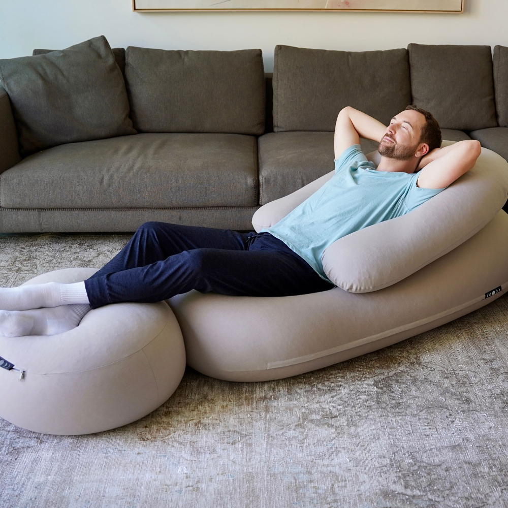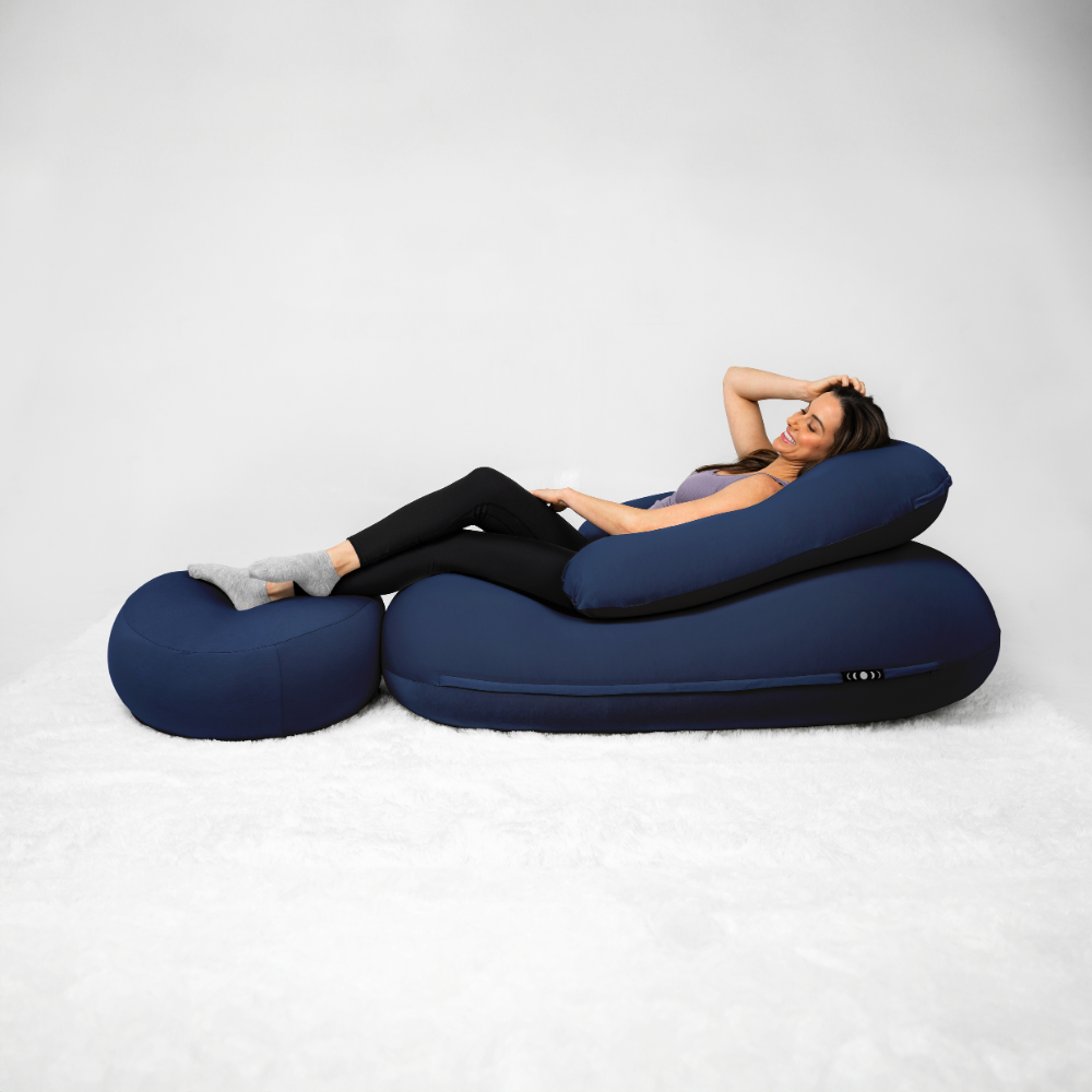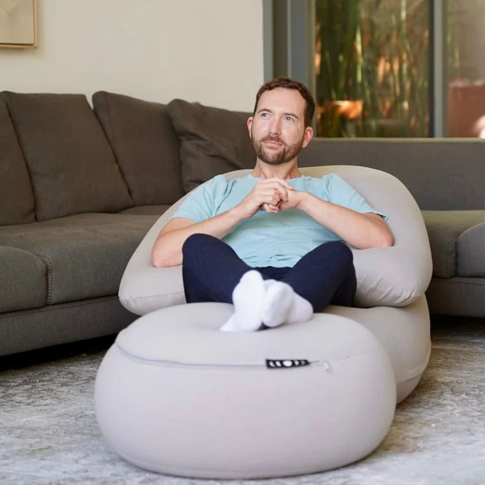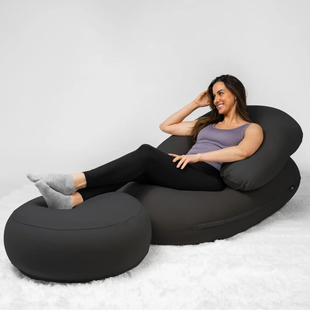 The most comfortable seat in the house. A beanbag chair loved by adults and kids, completely reinvented for relaxation. Experience extra comfort with the Moon Pod Bundle, featuring the Crescent Backrest and Lunar Lift Footrest.
