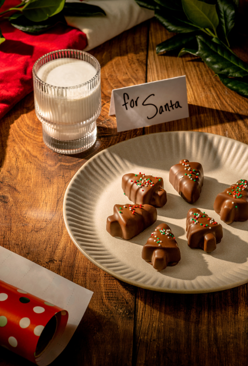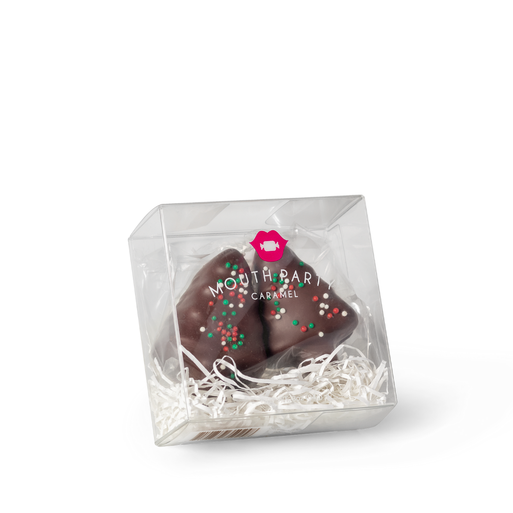 Blanketed with semi-sweet chocolate and adorned with holiday sprinkles, these vanilla caramel trees make an ideal stocking stuffer. Great for friends, teachers, or simply a treat for yourself this holiday season.