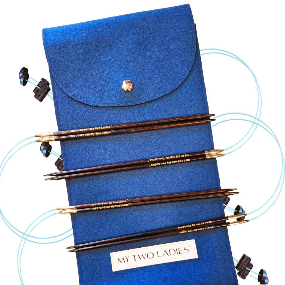 Blue Silk Adjustable Knitting Needles Shawl Set (5-Pieces)