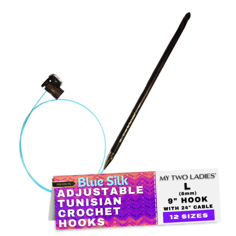 • Includes one (1) Blue Silk Adjustable Tunisian Crochet Hook in size of your choice