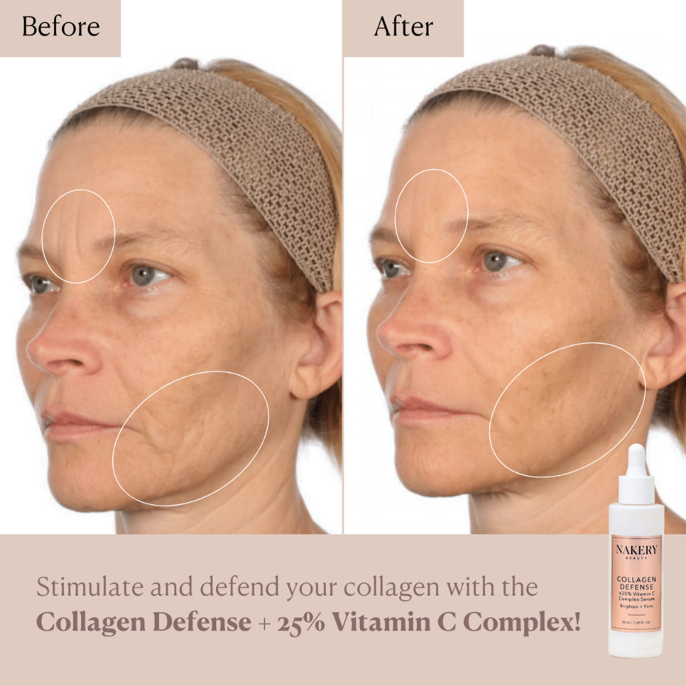 Collagen Defense + 25% Vitamin C Complex Serum combines three forms of vitamin C that work on the surface, deep within, and continuously throughout the day to brighten, protect, and stimulate collagen. Paired with other powerful ingredients, it targets dark spots, sun damage, sagging, and lines at multiple levels. This serum defends today while building the collagen of tomorrow.