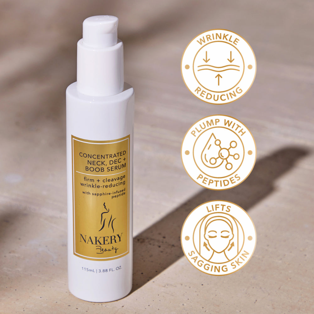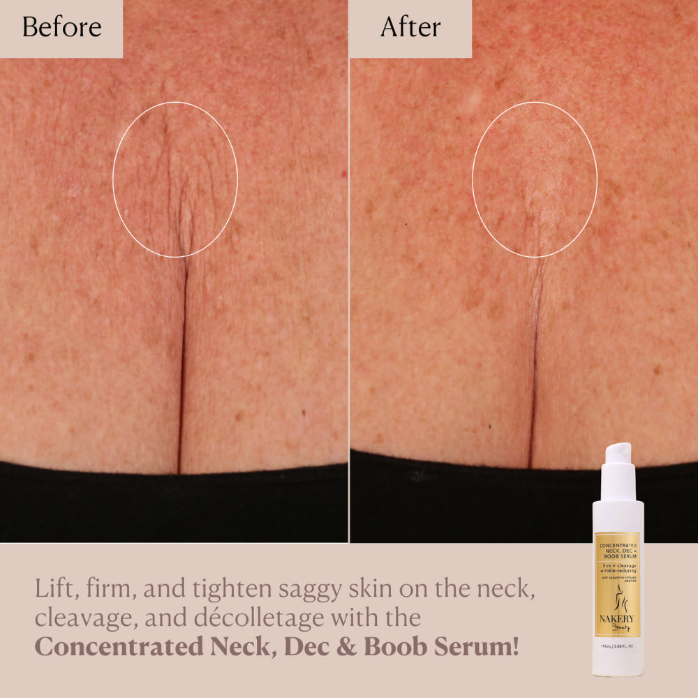 Powerful lifting and firming where you want it most. Concentrated Firming Neck + Dec Serum is an ultra-potent formula with double the actives to plump, lift, and smooth the thinnest skin—neck, cleavage, and bust—where it’s needed most. Designed to tighten loose, sagging skin, it helps visibly firm, soften lines, reduce crepiness, and restore a youthful-looking contour. A side sleeper’s best friend.