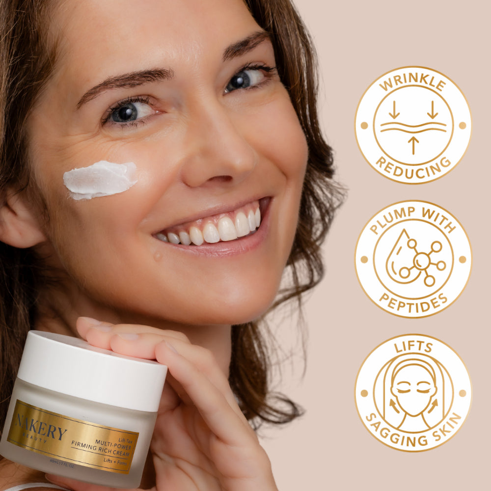 Achieve visibly younger-looking skin in just days. Lift-Tox Multi-Power Firming Rich Cream is formulated to deliver instant, long-term lifting and tightening. Its memory foam texture helps snap sagging skin back into place while peptides work to smooth wrinkles and prevent new ones—your fountain of youth in a jar.