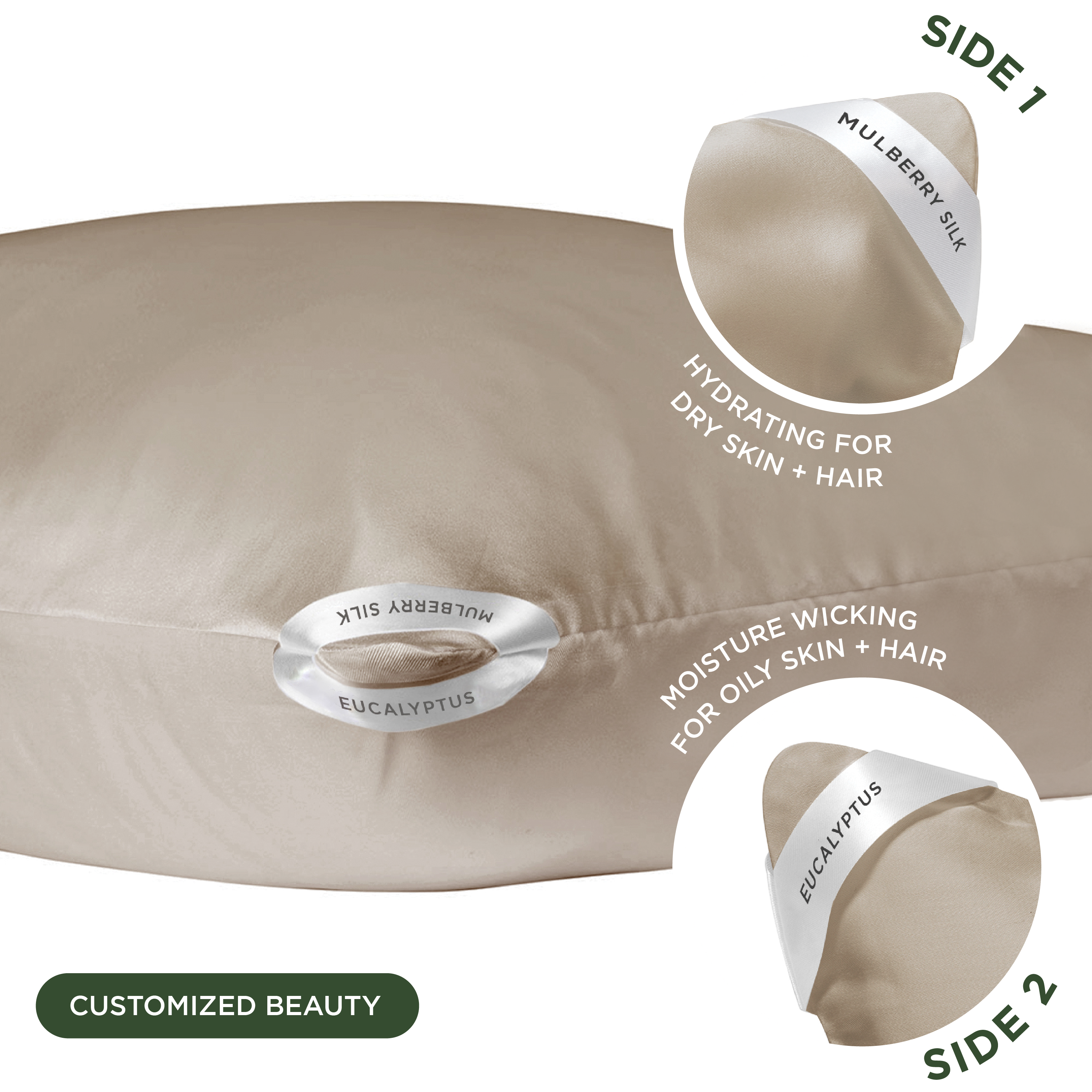 This dual-sided beauty pillowcase is designed to support clear skin for all skin types. The two sides allow for customizing the pillowcase to your beauty needs year-round.