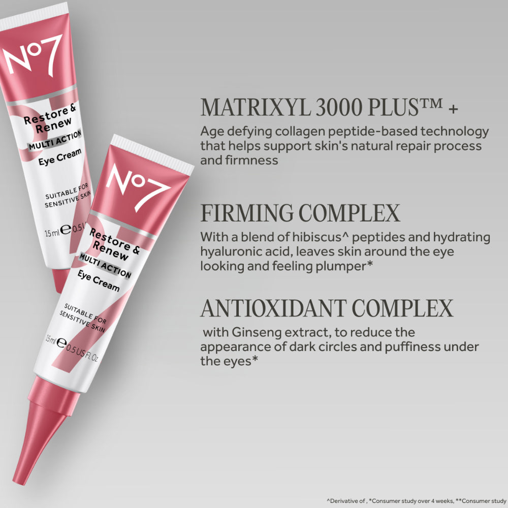 Restore & Renew Eye Cream helps skin feel firm with a formula designed for delicate skin around the eyes. Containing a next-generation, age-defying collagen peptide-based technology, hydrating blend of hibiscus peptides, and hyaluronic acid, this eye cream for anti-aging helps skin feel firmer and look visibly younger.