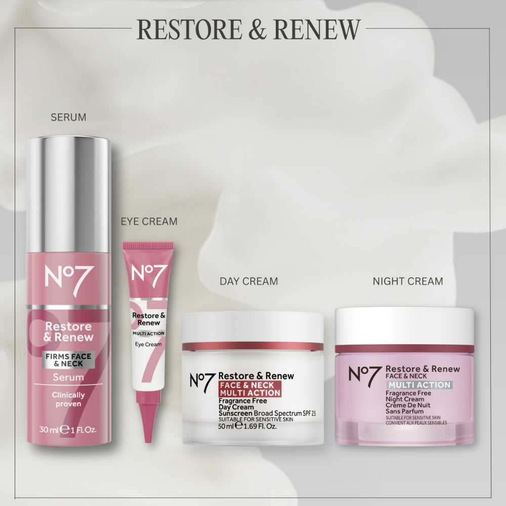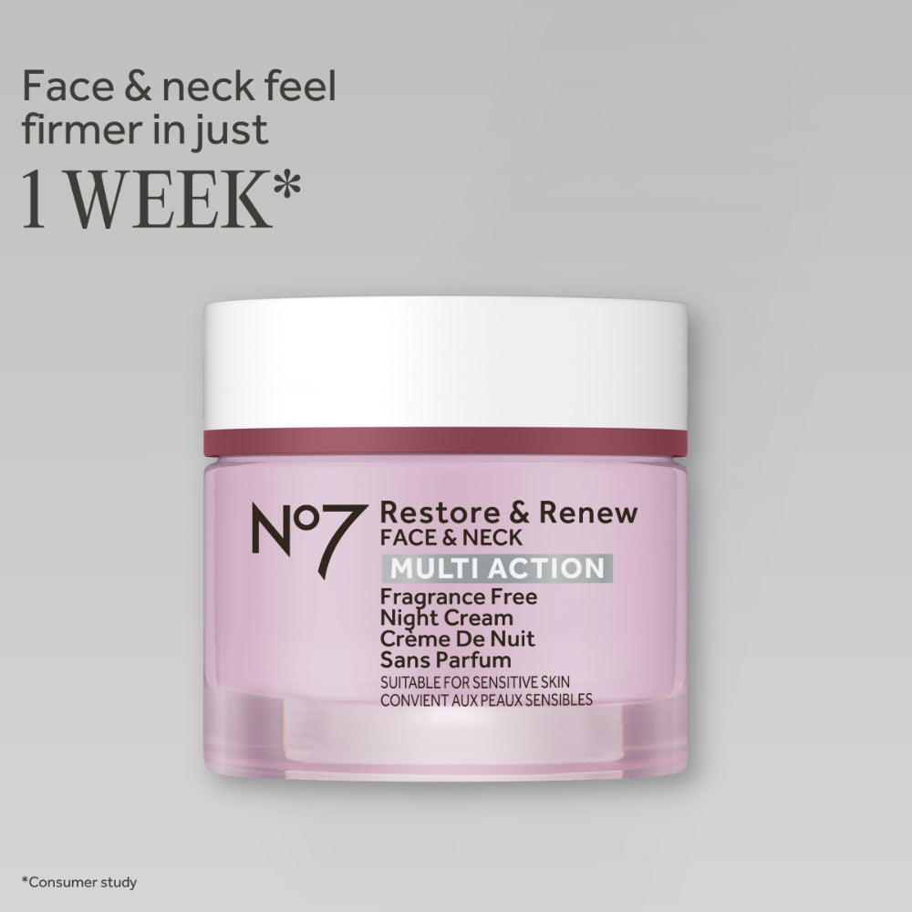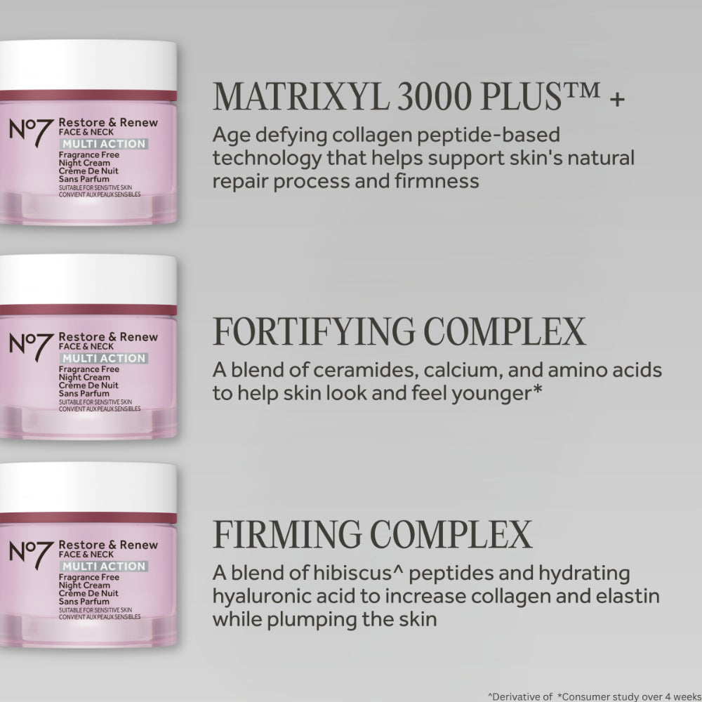 Restore & Renew Night Cream works in harmony with your skin's natural nighttime repair processes to help restore the skin's moisture barrier. Formulated with a next-generation, age-defying collagen peptide-based technology, this anti-aging night cream is designed to visibly reduce the appearance of wrinkles for younger-looking skin. Its firming complex contains a hydrating blend of hibiscus peptides and hyaluronic acid, while its night complex has vitamin E and shea butter.