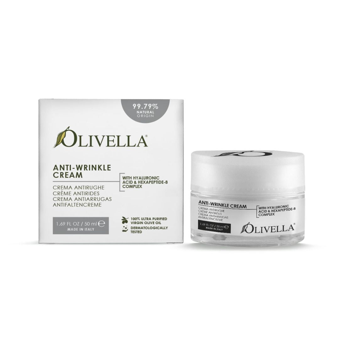 Naturally smooth, firm, renewed.This Anti-Wrinkle Cream is enriched with biotechnologically sourced hyaluronic acid, chosen for its purity, safety, and proven effectiveness. The natural formula combines advanced hydration with the power of beech bud extract, a gemmotherapy innovation known for strengthening the skin’s epidermal structure.