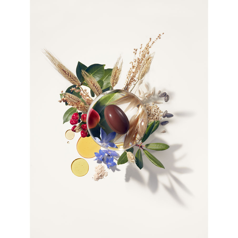 Bovine Gelatin, Carrot Oil in Sunflower Oil, Acerola Extract, Glycerol, Borage Seed Oil 20% GLA, Hydrogenated Soybean Oil, Fish Oil, Rice Bran Oil, D,L, Alpha Tocopherol Acetate, Brewer’s Yeast, Wheat Germ Oil, Calcium Pantothenate, Soybean Lecithin, Orizanol, Pyridoxine Chlorhydrate, Riboflavine, Biotin, Titanium Dioxide, FDC Yellow 6, FDC Red 40, FDC Blue 1, Cereal Flavor (Gluten)