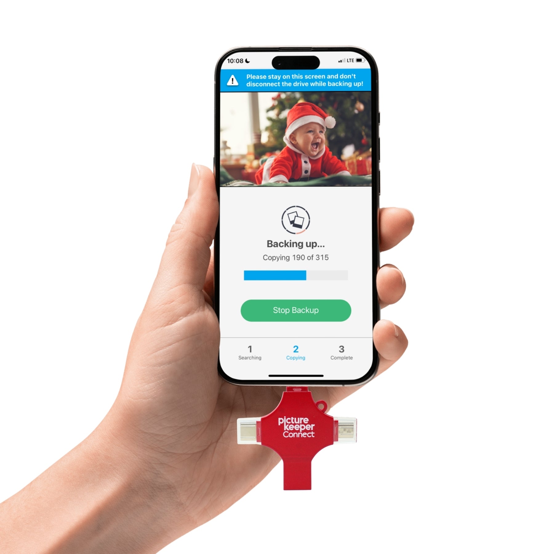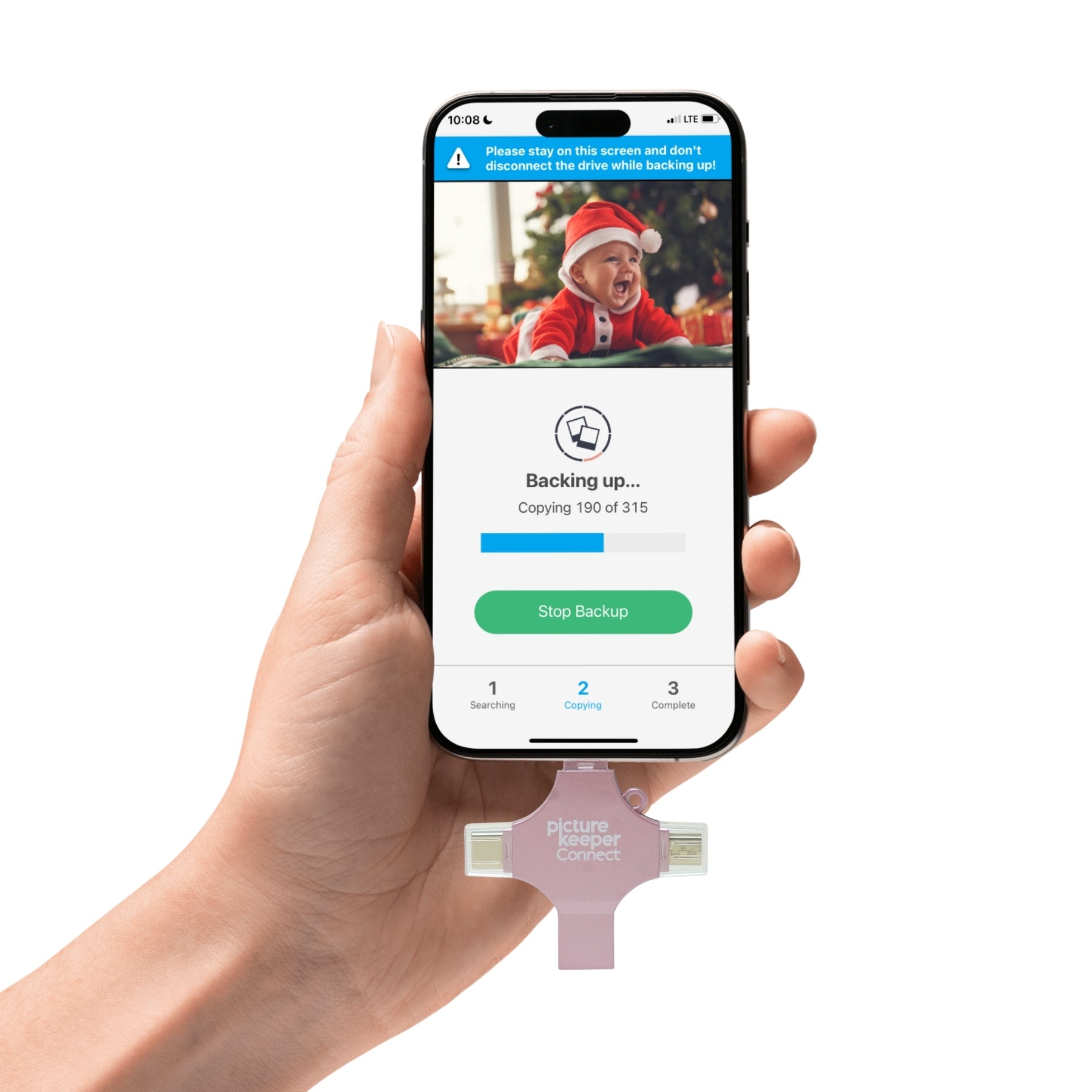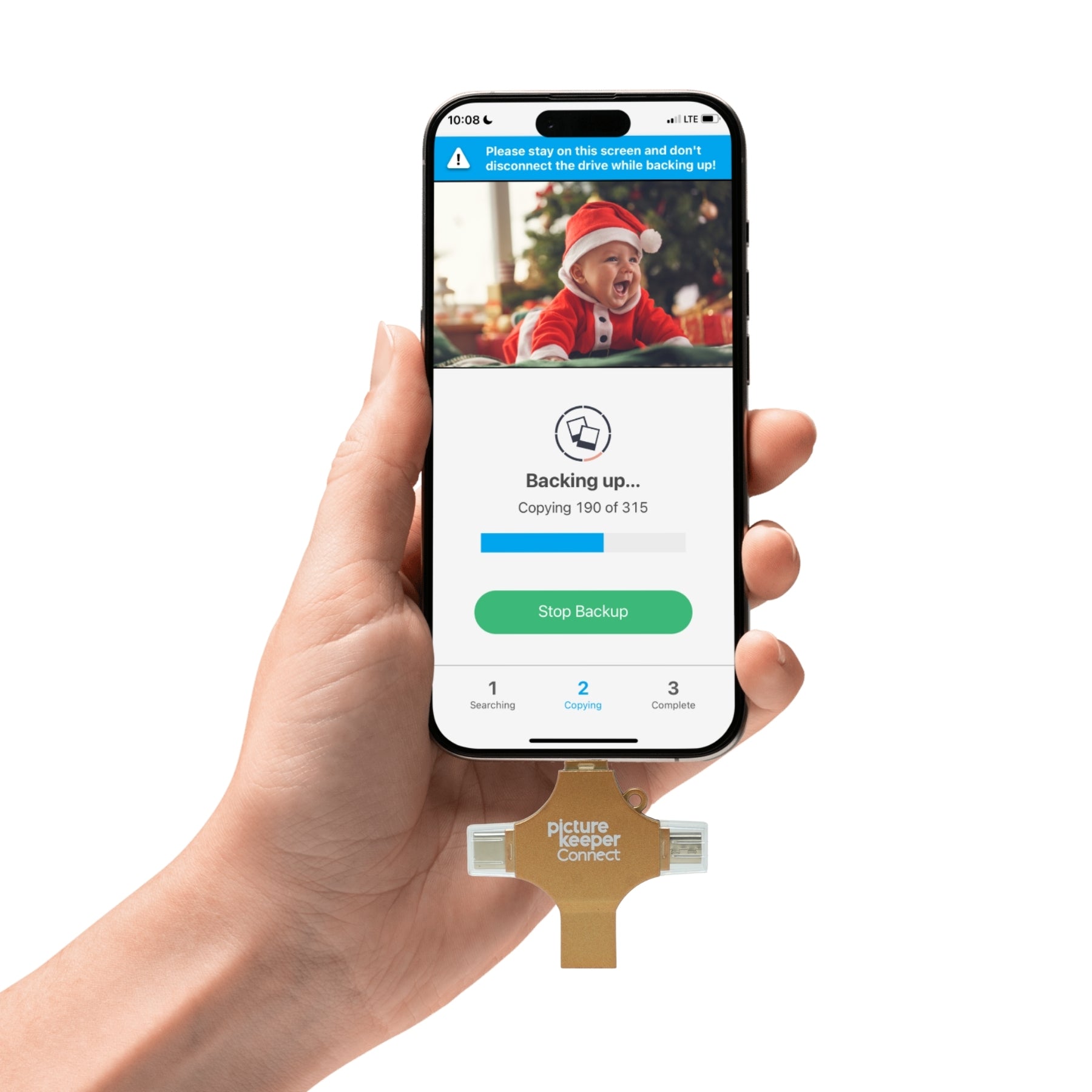 • Seamlessly picks up where the last backup left off, even if you use a new Picture Keeper drive