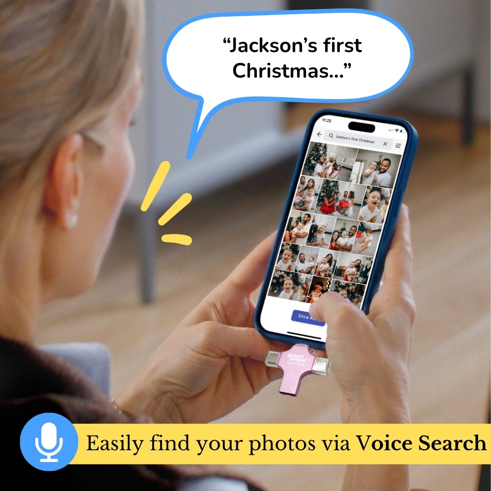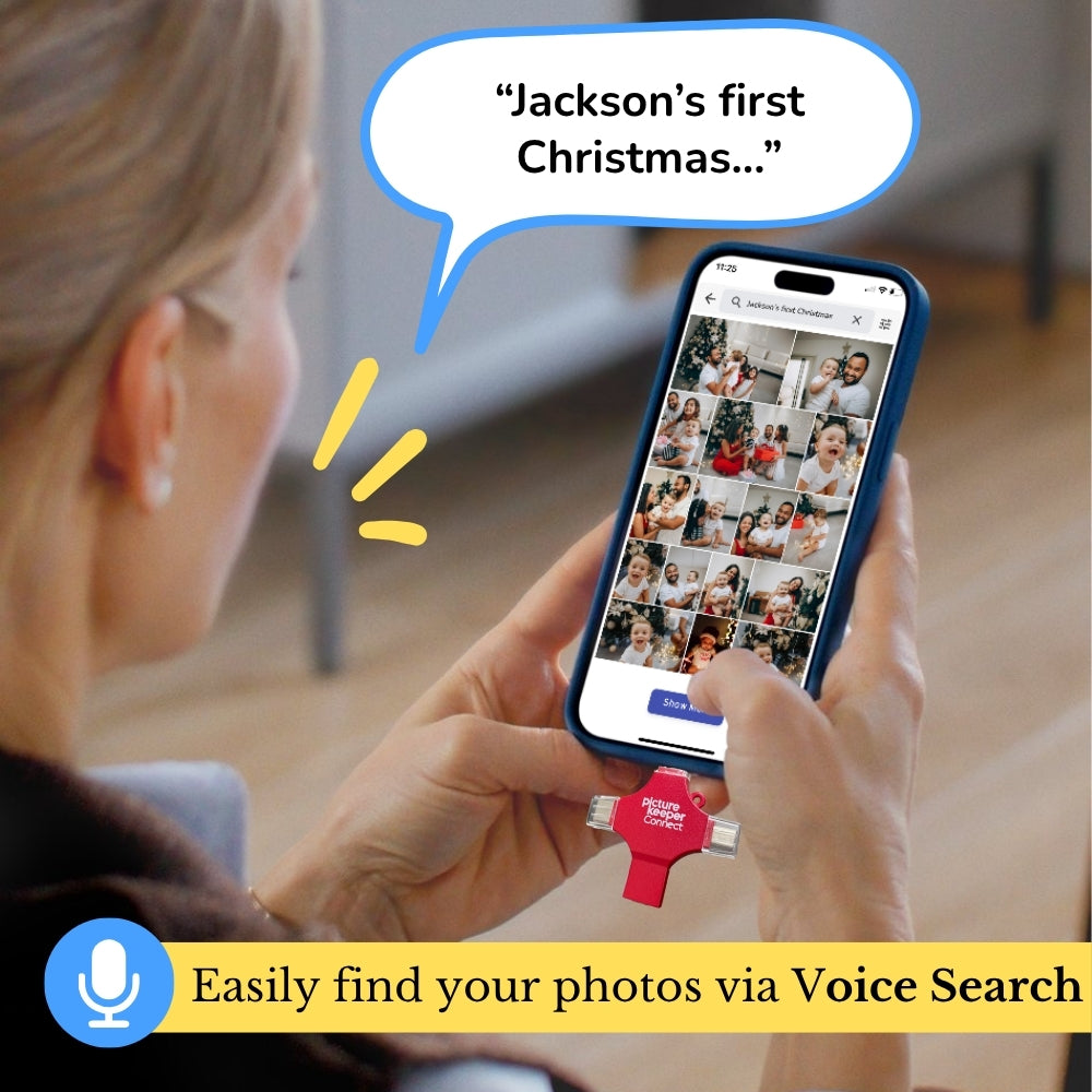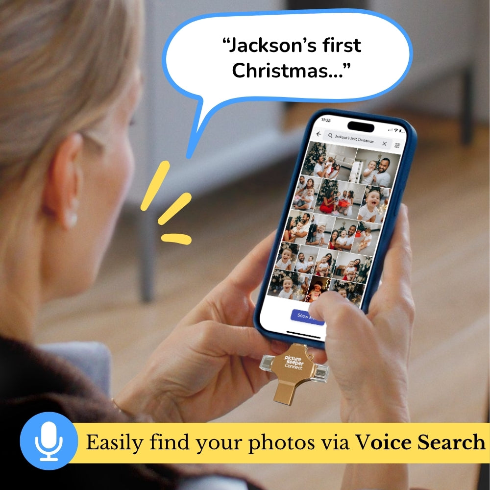 • Easily find your photos with your voice — no need to “thumb through” 1000’s of photos