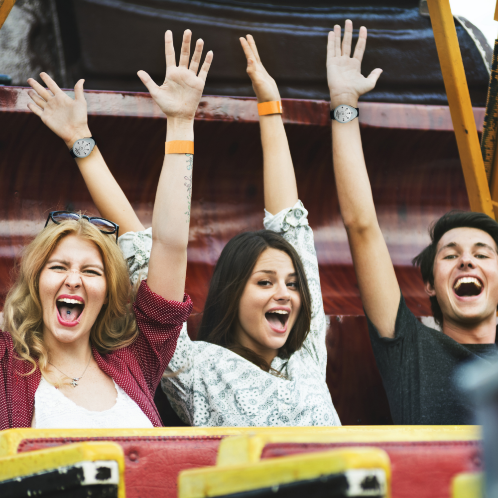 Turn on the Reliefband by pressing down on the power button for 3 seconds—this will power the device on to level 1