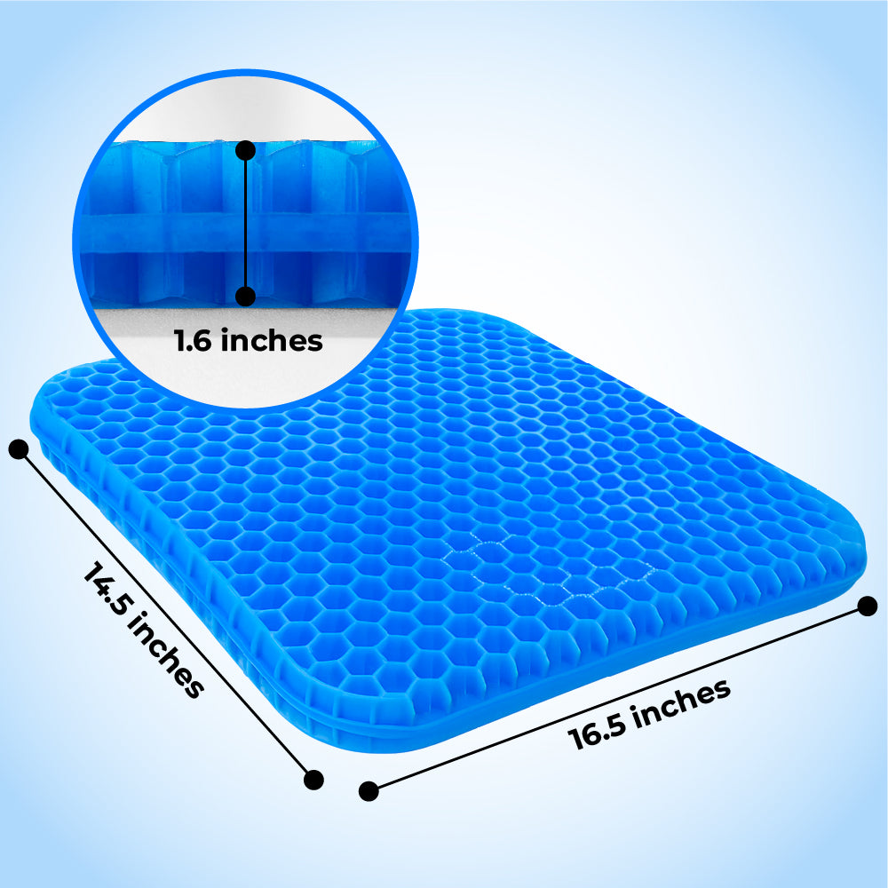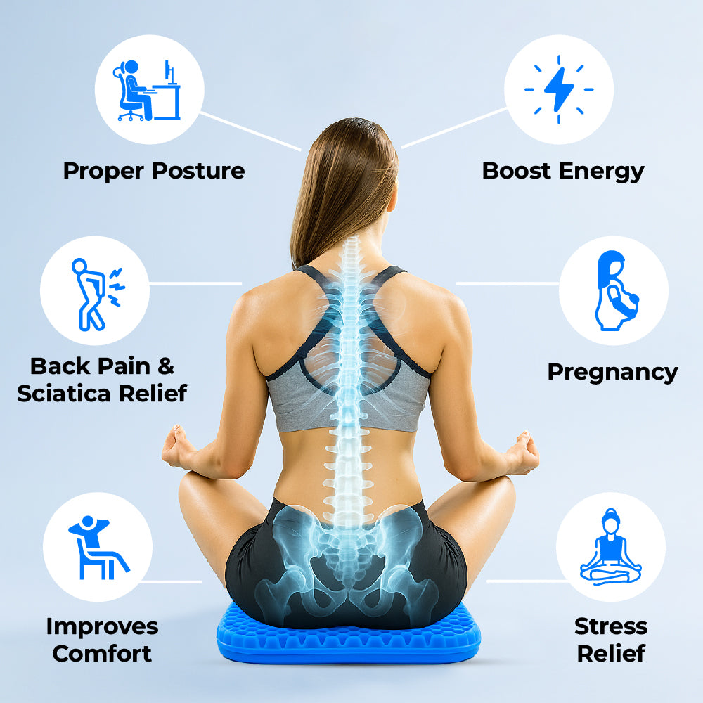 Upgrade everyday seating with a supportive gel cushion designed to relieve pressure and enhance comfort during long periods of sitting at work, in the car, or at home. Engineered to enhance comfort during extended periods of sitting, this gel seat cushion relieves pressure on key areas such as the back, coccyx, and hips while providing breathable support.