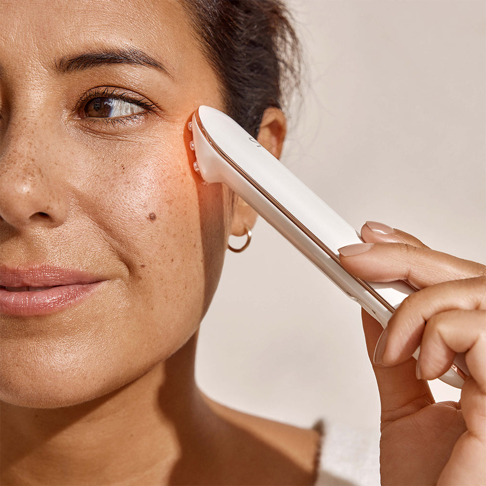 • Bi-Polar Radio Frequency: Penetrates up to 4 mm to help tighten the deeper skin layer and improve the look of wrinkles