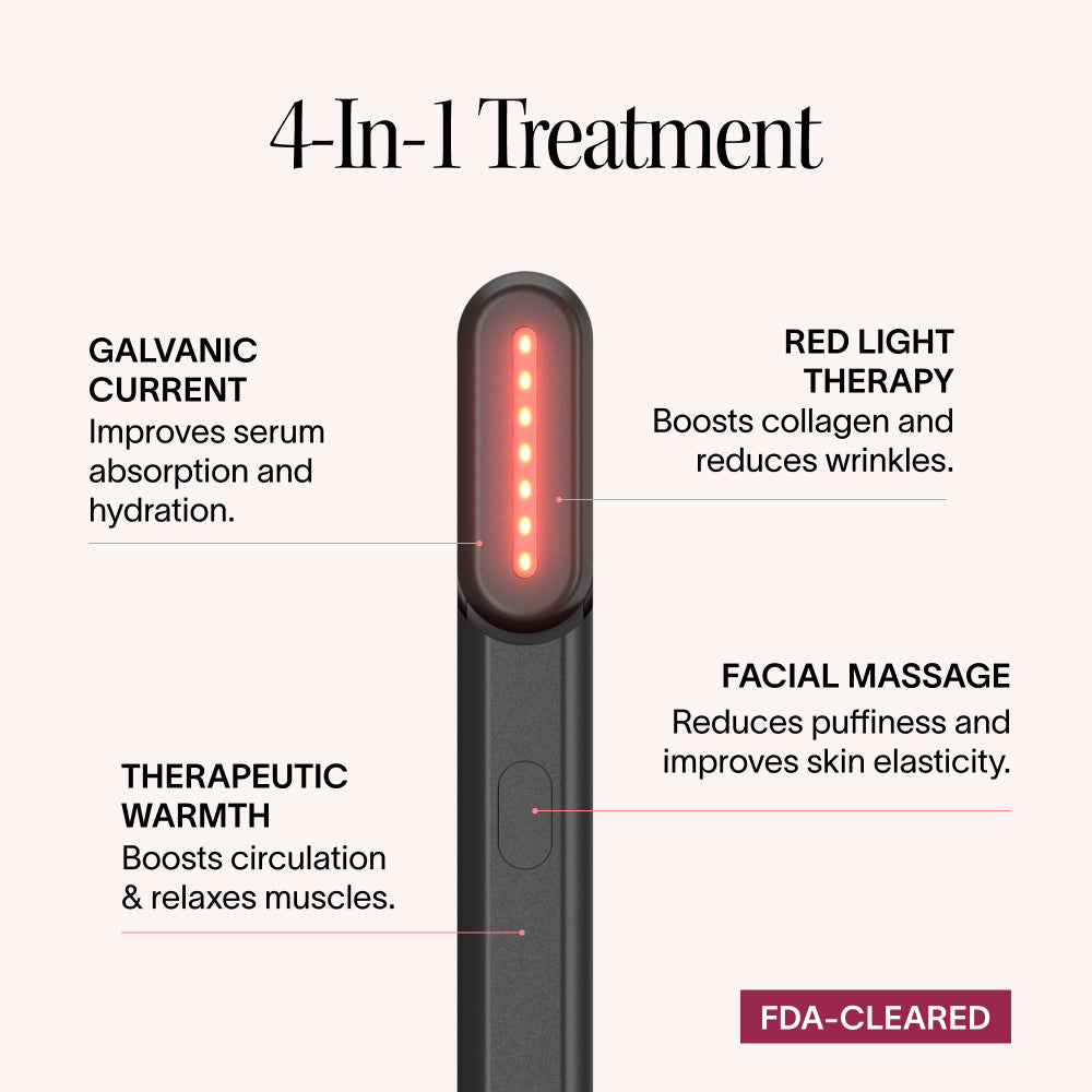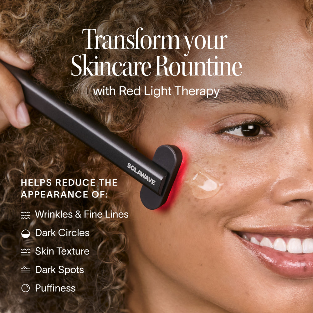 FDA Cleared for visible skin rejuvenation. The dermatologist-recommended handheld essential. The award-winning Radiant Renewal Skincare Wand synchronizes Red Light Therapy, Galvanic Current, Therapeutic Warmth, and Facial Massage to visibly soften fine lines, depuff, and refresh tired skin in just 12 minutes per day. Solawave designs, develops, and manufactures FDA Cleared, dermatologist-recommended light therapy products. Professional-grade skin results from the comfort of home.