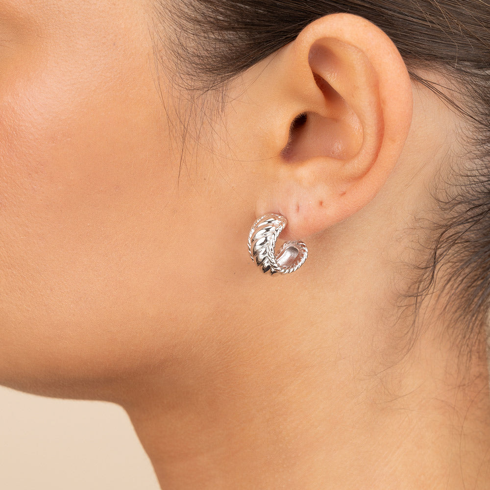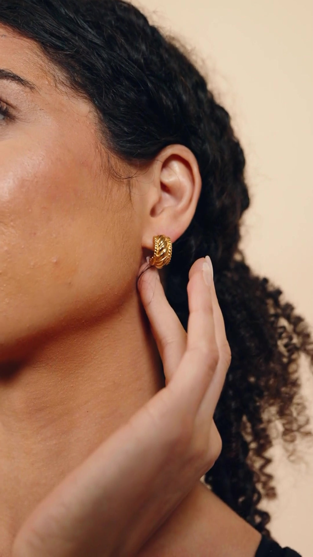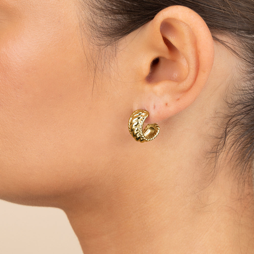 Kalina is all about texture—a rounded hoop with soft, sculptural ridges and rope-like detail. Compact and dimensional, not too big, not too basic—just confidently in-between.