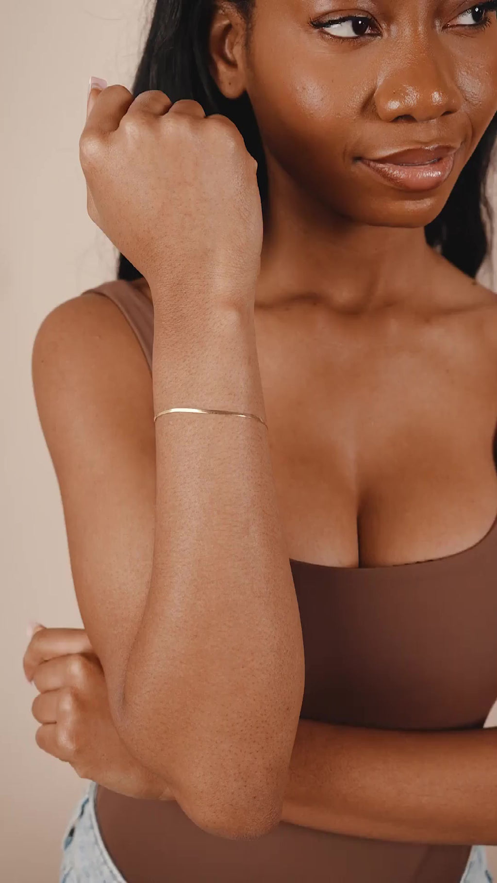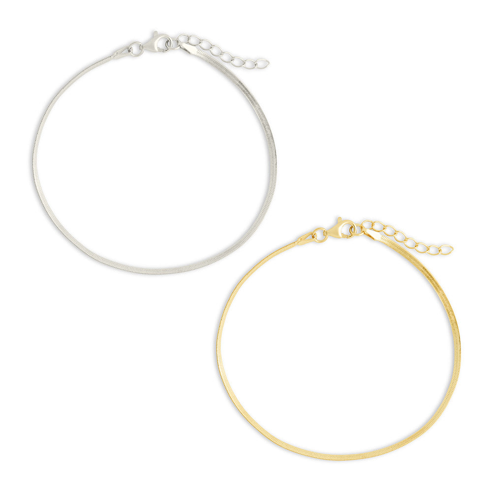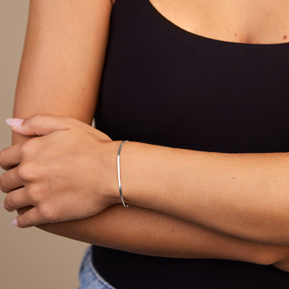 The Sterling Silver Herringbone Chain Bracelet is designed to move with you—fluid, light, and quietly bold. This ultra-sleek piece adds just the right touch of polish to your stack, or stands out on its own.